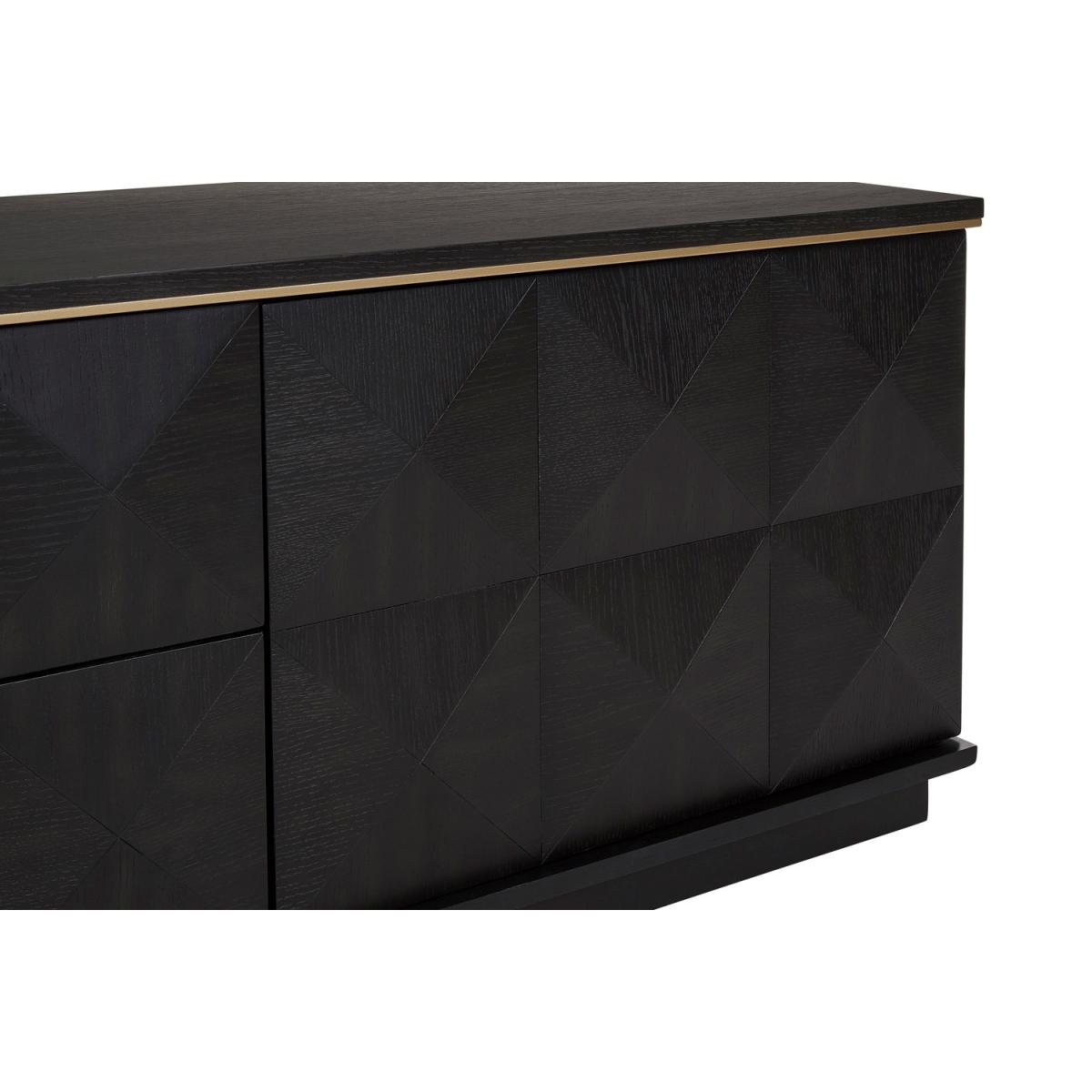 A star in the making, Nova features a contemporary geometric design, beautifully carved from sustainable rubberwood. With striking sculpted diamond patterns, a complementary brown oak veneer top, and a glamourous gold trim, the Nova media and shelving unit brings pure indulgence to your home, elevating the space to be fabulous as well as functional.
