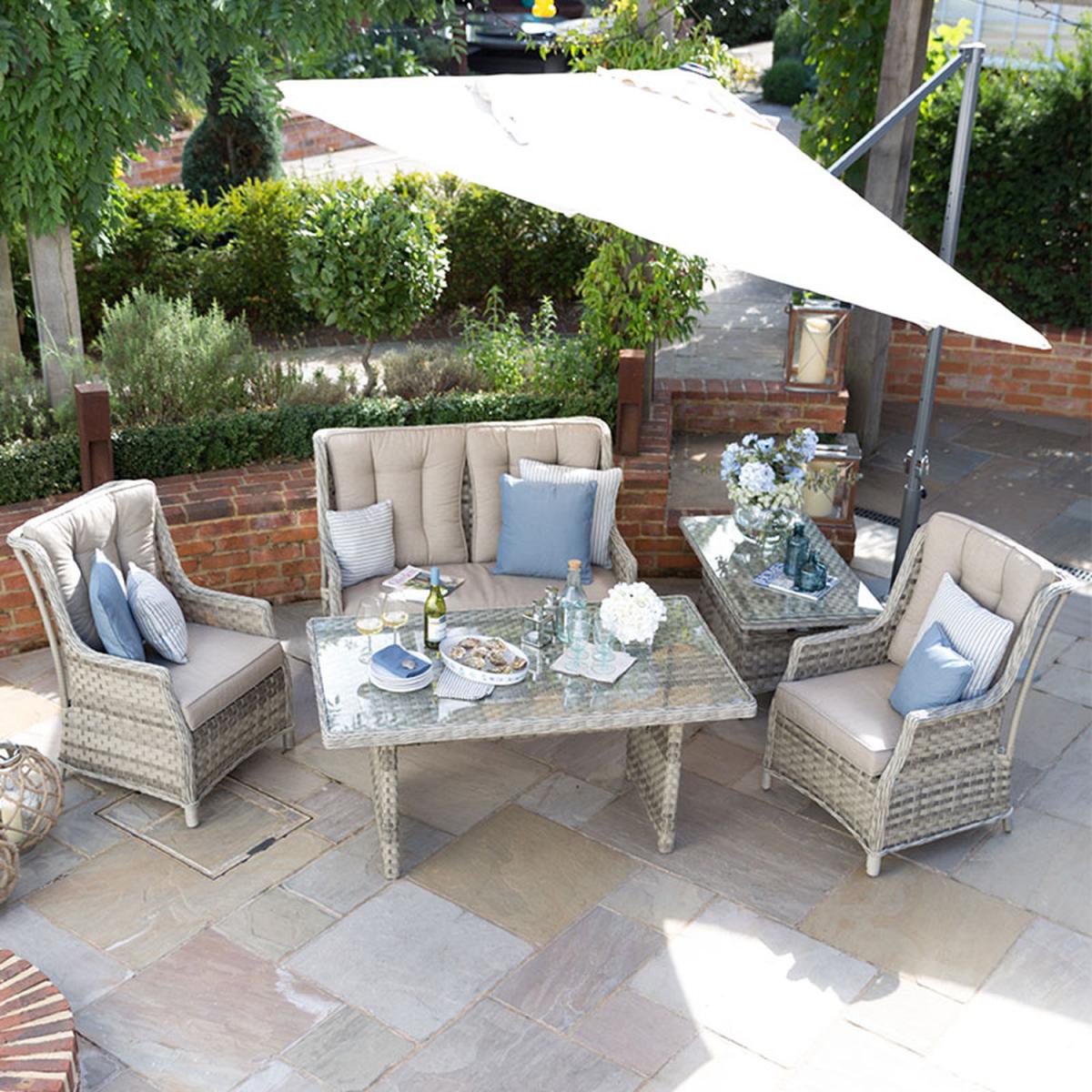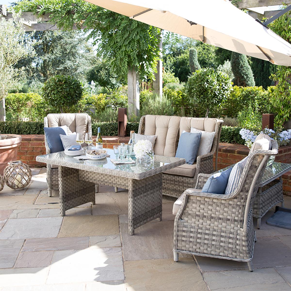 The Oyster 2 Seat Sofa Rattan Dining Set offers both flexibility and practicality as it can be used as a comfortable sofa set or a formal dining set depending on the occasion. Manufactured using aluminium frames, which prevent rust, and duracore rattan which has been specifically designed to withstand all weather conditions such as snow, frost, rain and sun you will be safe in the knowledge that your set can be left outside all year round without weather damage. The casual dining table is topped with 8 mm tempered glass for extra safety and has plenty of space for food and drink. The 2 seat sofa and 2 armchairs are extremely comfortable and make for enjoyable lounging. This set comes complete with thick padded cushions throughout. We advise keeping the cushions inside when not in use as they are not waterproof. However, the cushion covers can be unzipped and are machine washable. This set comes with a 7 year warranty to ensure quality and peace of mind. The chairs will arrive fully assembled however the table will require some assembly.