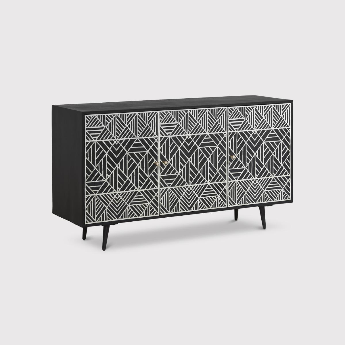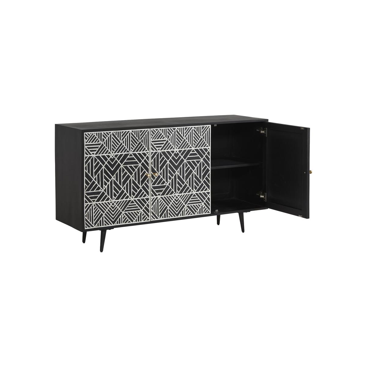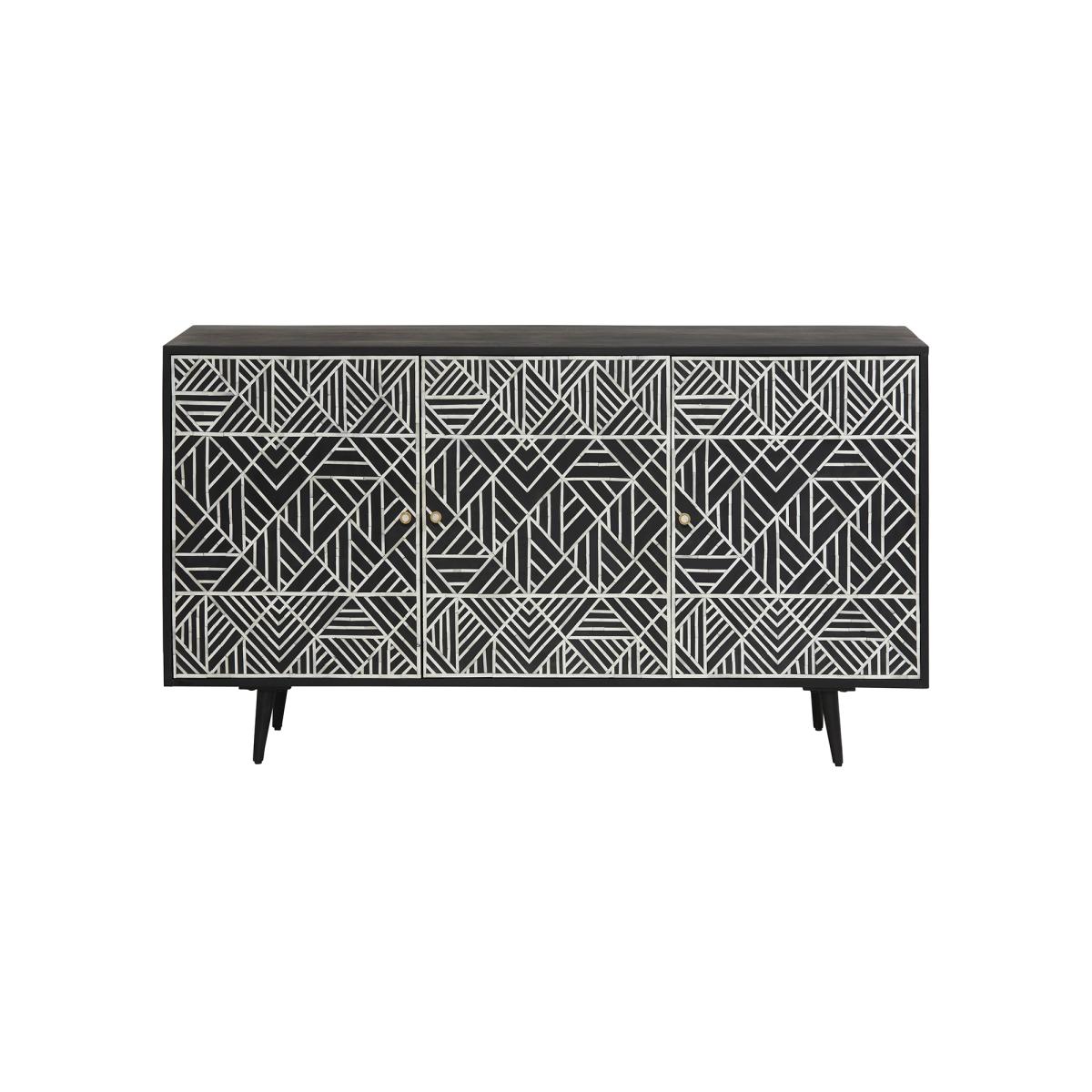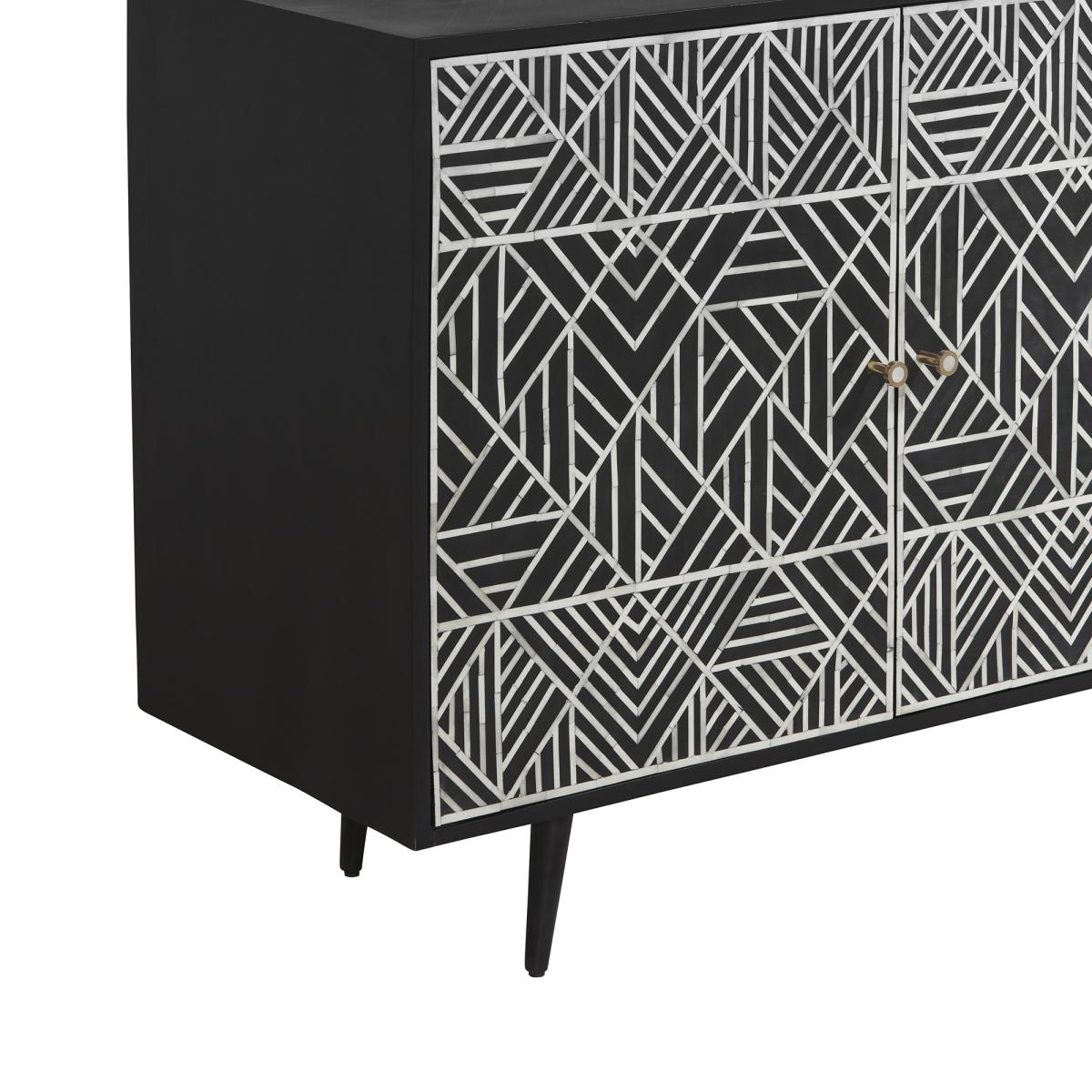 The Novak Sideboard is a perfect storage solution especially for your living or dining room whilst being a statement piece in any room it is placed in. Handmade making each piece unique by a team of skilled artisans and admired by many. Featuring a geometric design bone inlay on a black background making it really stand out and would blend beautifully with many decor styles.