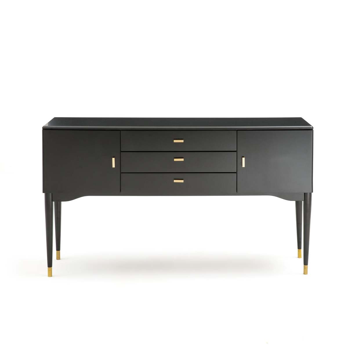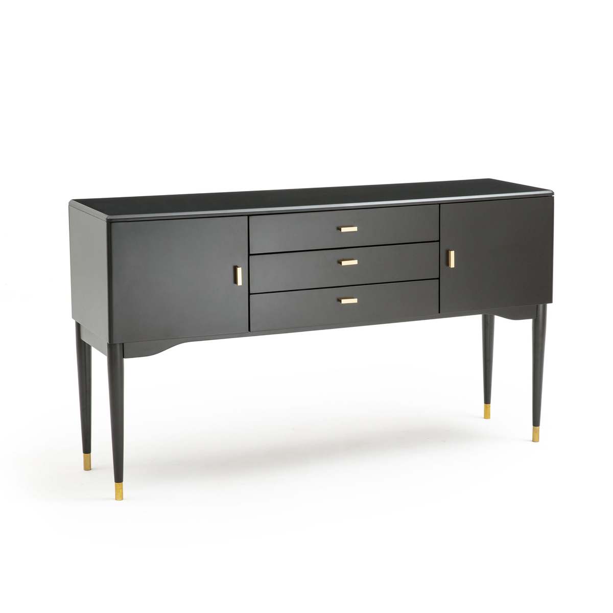 With clean and modern lines, this design will add effortless style to any space. The Novani's 3 drawers and cupboards keeps the room tidy and clutter-free, whilst the brass and black finish brings eye-catching elegance.