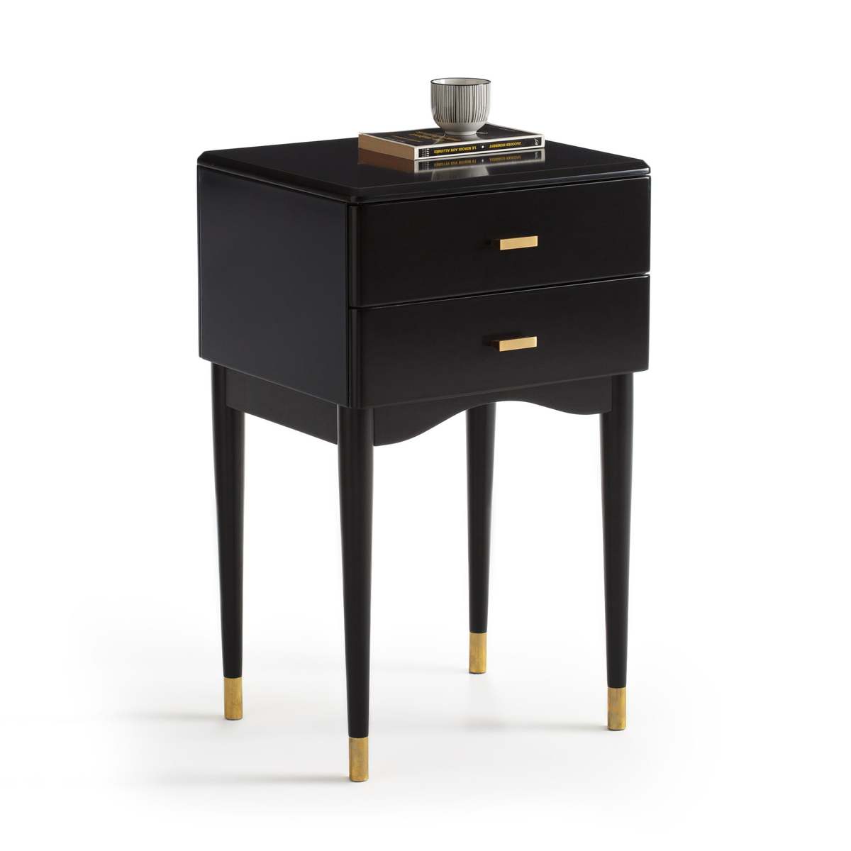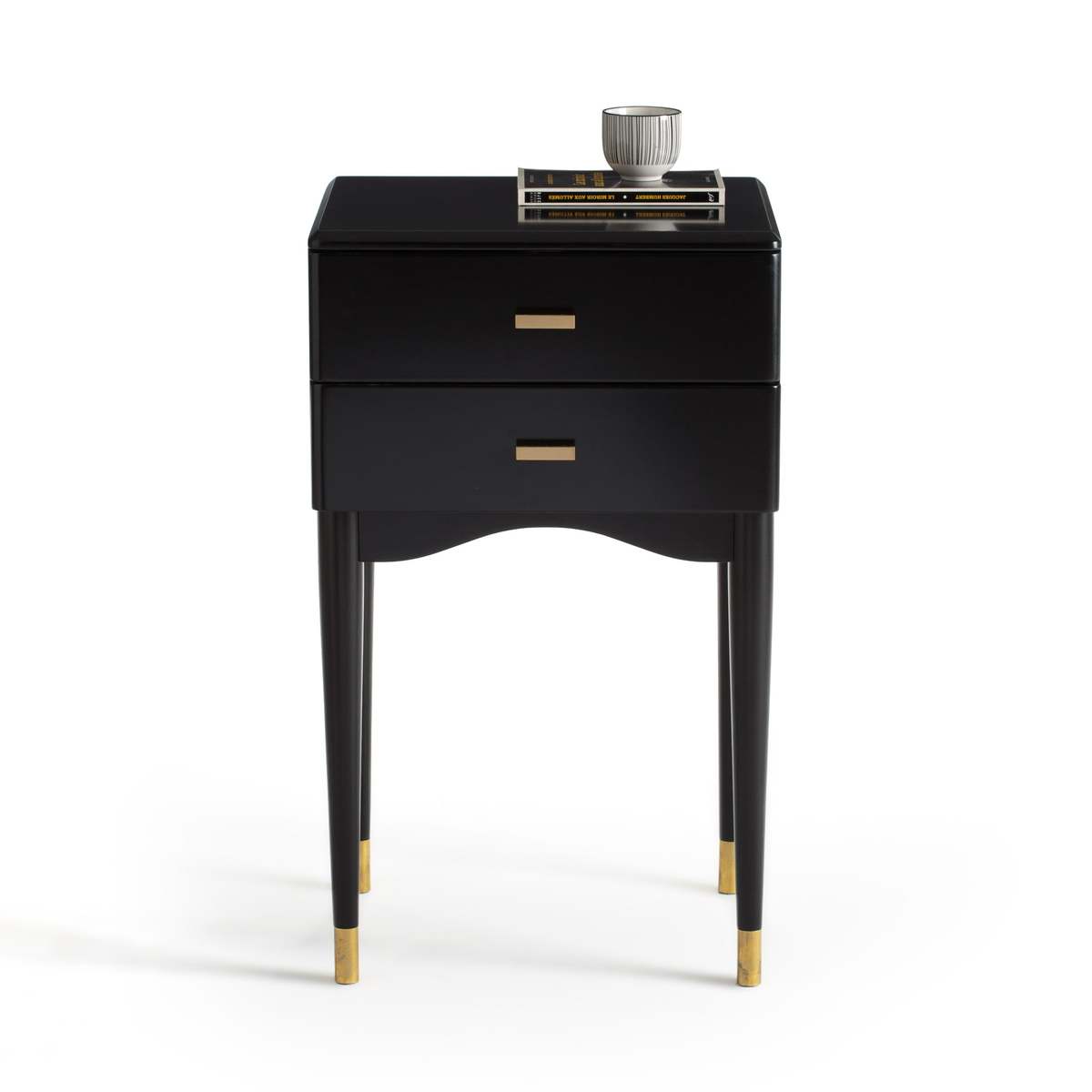 I really like the Novani bedside table for its sleek, modern look with a touch of elegance thanks to the black finish and subtle brass accents. It works particularly well in contemporary or minimalist interiors, adding a sophisticated focal point without overwhelming the space. A practical styling tip is to keep the top surface uncluttered-perhaps a small lamp, a couple of favourite books, or a decorative tray-while utilising the drawers for hidden storage of essentials. Its clean lines and colour make it versatile enough to complement both monochrome schemes and more colourful or textured bedroom décors. The tapered legs also add a lightness to the piece, making it suited to spaces that aim for an airy, uncluttered feel.