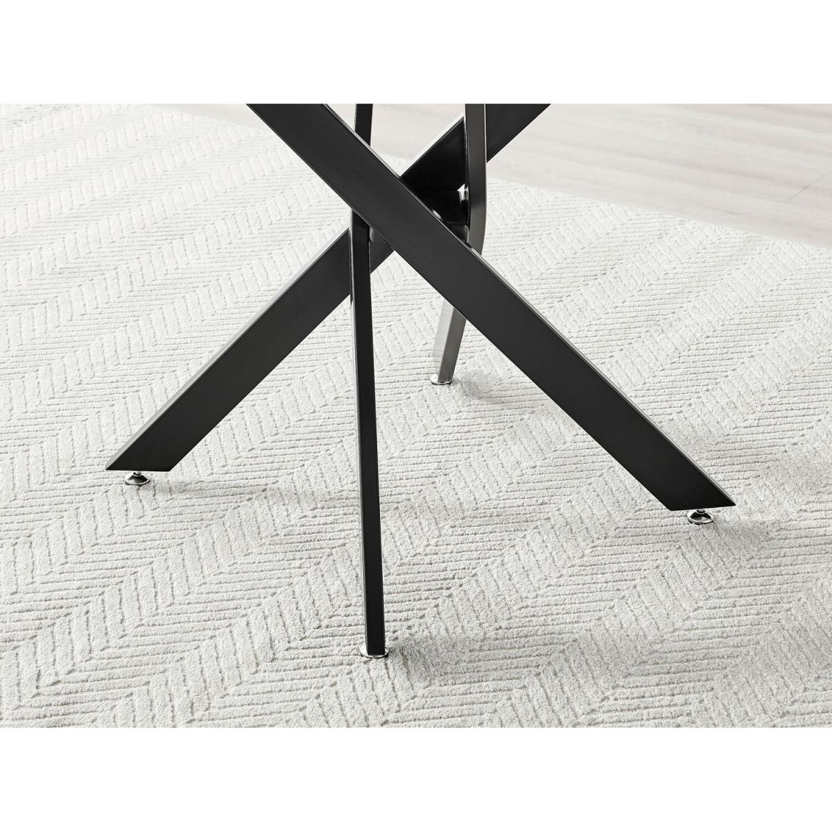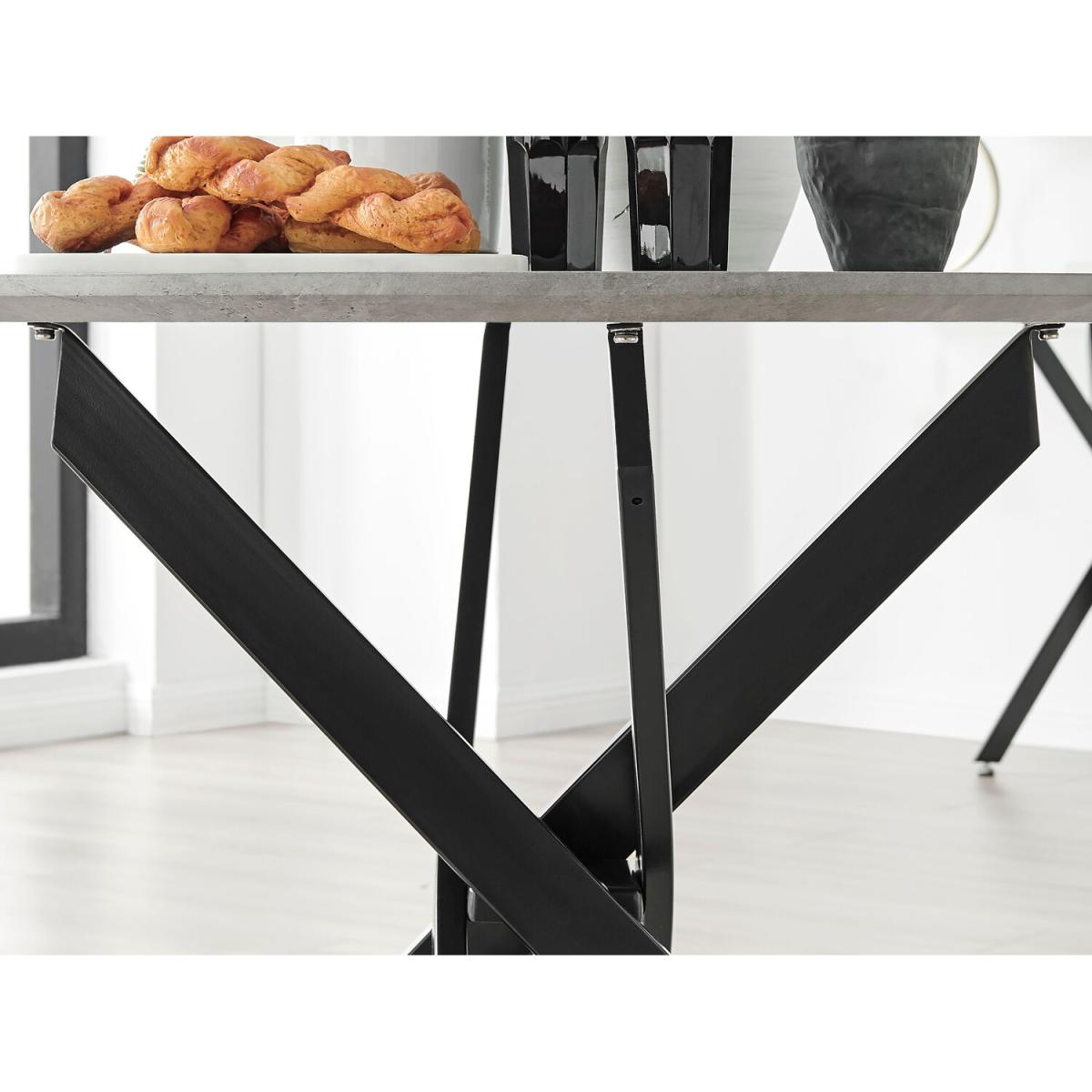 Our popular Novara round dining table here combines a super modern concrete effect tabletop with chic matte black metal legs in an eye-catching nested starburst design. A sleek, minimalist dinner table with an Industrial touch. The open space created by the legs still keeps this design feeling light airy. At 100cm across, this table is perfect for smaller spaces and more intimate, relaxed dining. Seats 2 - 4, making this a great family table that will suit any modern home. The strong metal legs not only make this table a real central feature for your room but keep it sturdy. The grey concrete effect veneer is very on-trend right now and easy to wipe clean too, meaning your Novara will stay looking great for years to come. Also available in a larger 120cm size with range of other leg and tabletop finishes, and with matching side tables, consoles and coffee tables, so be sure to check out the full Novara range!