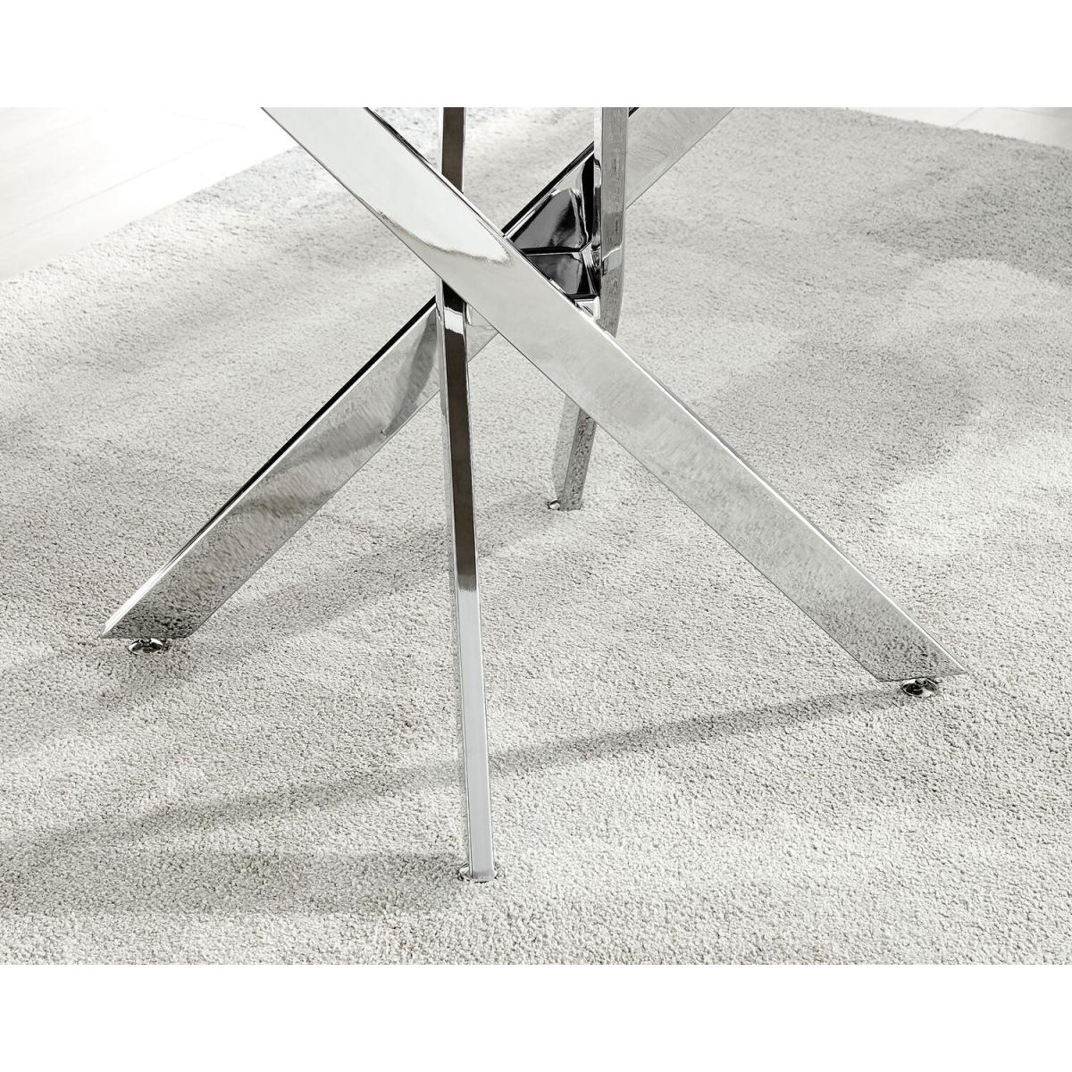Our popular Novara round dining table here combines a super modern concrete effect tabletop with shiny silver chrome legs in an eye-catching nested starburst design. A sleek and minimalist dinner table that will bounce light around your dining area and create a sense of space. At 100cm across, this table is perfect for smaller spaces and more intimate, relaxed dining. Seats 2 - 4, making this a great family table that will suit any modern home. The strong metal legs not only make this table a real central feature for your room but keep it sturdy. The grey concrete effect veneer is very on-trend right now and easy to wipe clean too, meaning your Novara will stay looking great for years to come. Also available in a larger 120cm size with range of other leg and tabletop finishes, and with matching side tables, consoles and coffee tables, so be sure to check out the full Novara range!