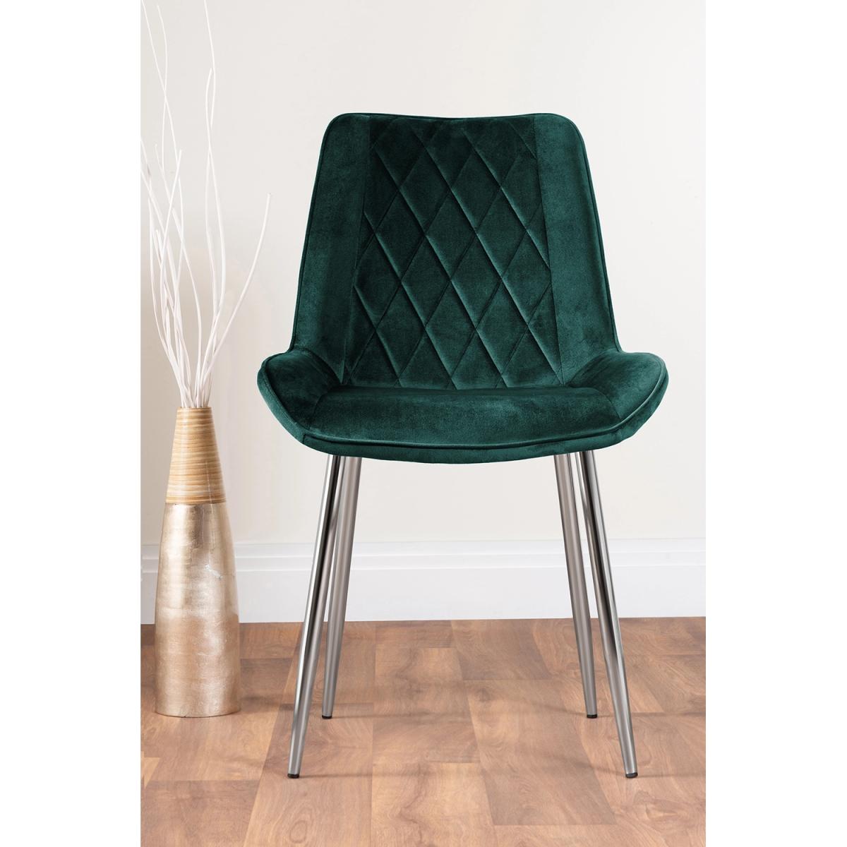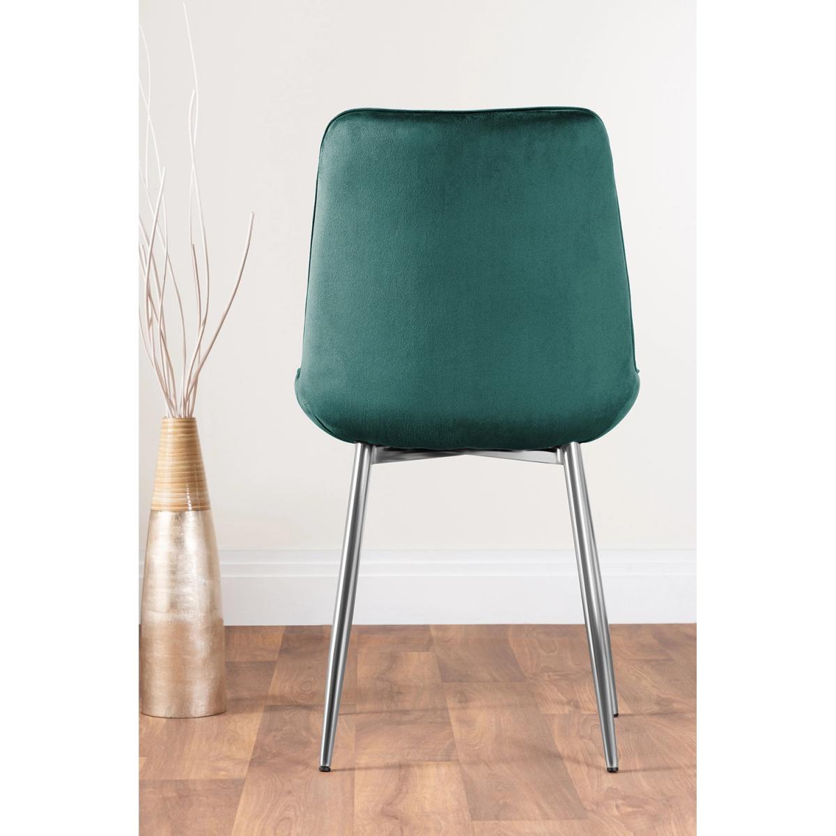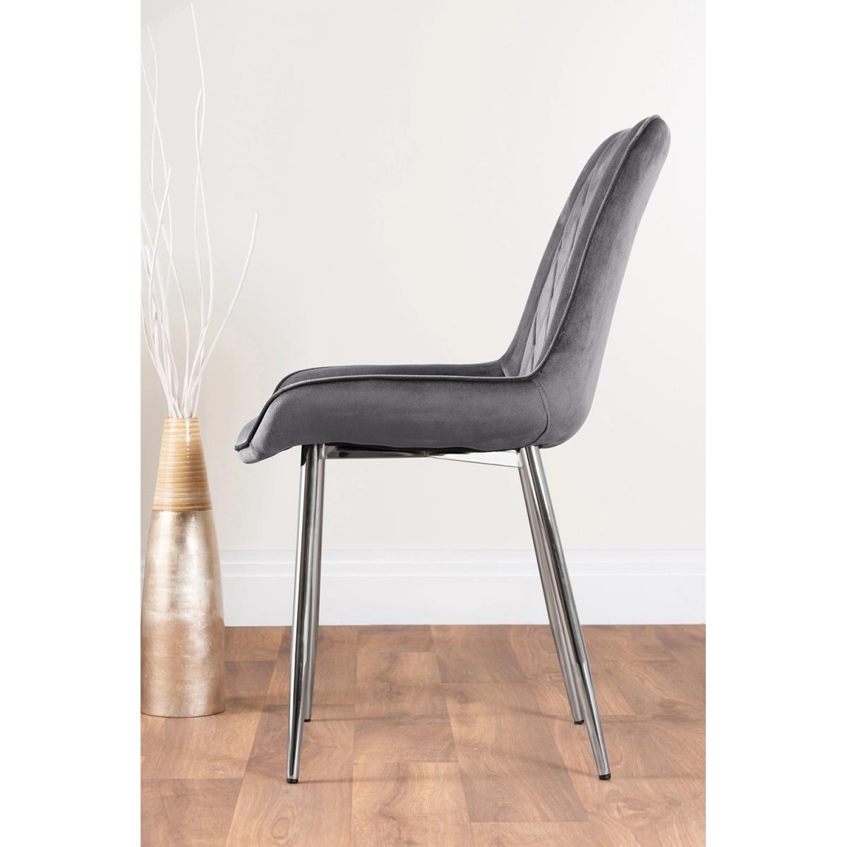 The strikingly elegant Novara dining table is a stylish and modern combination of chrome and glass, making this item a real eye-catcher. The chrome metal legs provide strong and sturdy support for the table, whilst the unique intertwined nest design exudes modern style. This table is capable of being a centrepiece in any home! With a generous 120x120cm surface, you can dine in style with up to 6 guests. Combined with our luxurious velvet upholstered Pesaro dining chairs, this set will shout luxury and style! With a nod to the Mid-century modern design era, the Pesaro chairs feature gorgeous textured diamond stitching with an ergonomically designed curved seat pad blending seamlessly to the supporting medium-high backrest. Sat atop elegant slightly tapered chrome legs, these chairs perfectly complement this luxury dining set.