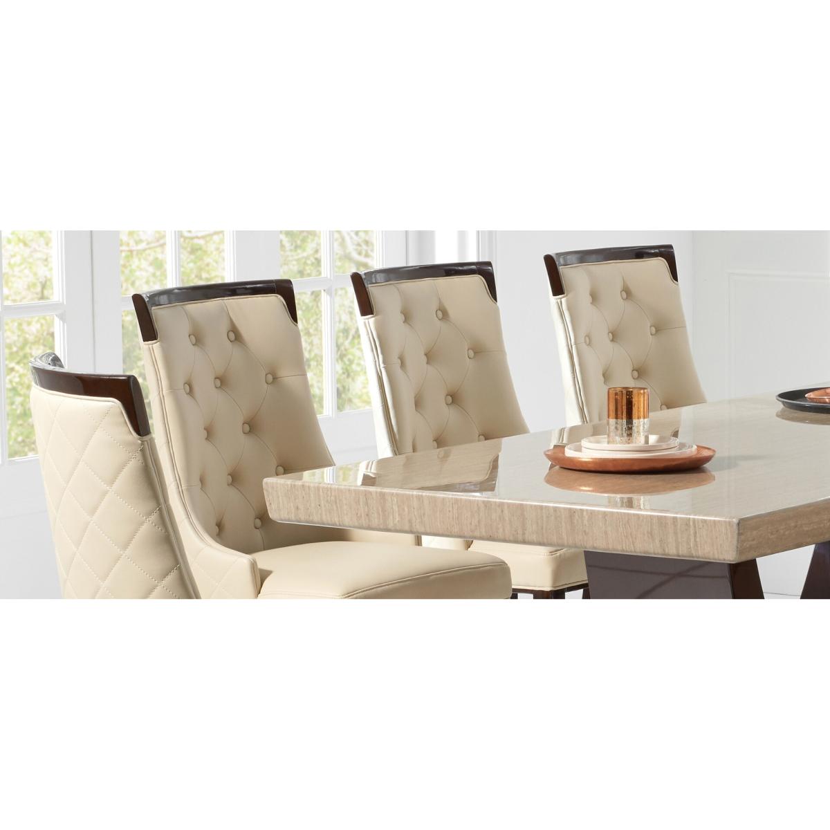 Novara 200cm Brown Pedestal Marble Dining Table with 6 Cream Francesca Chairs