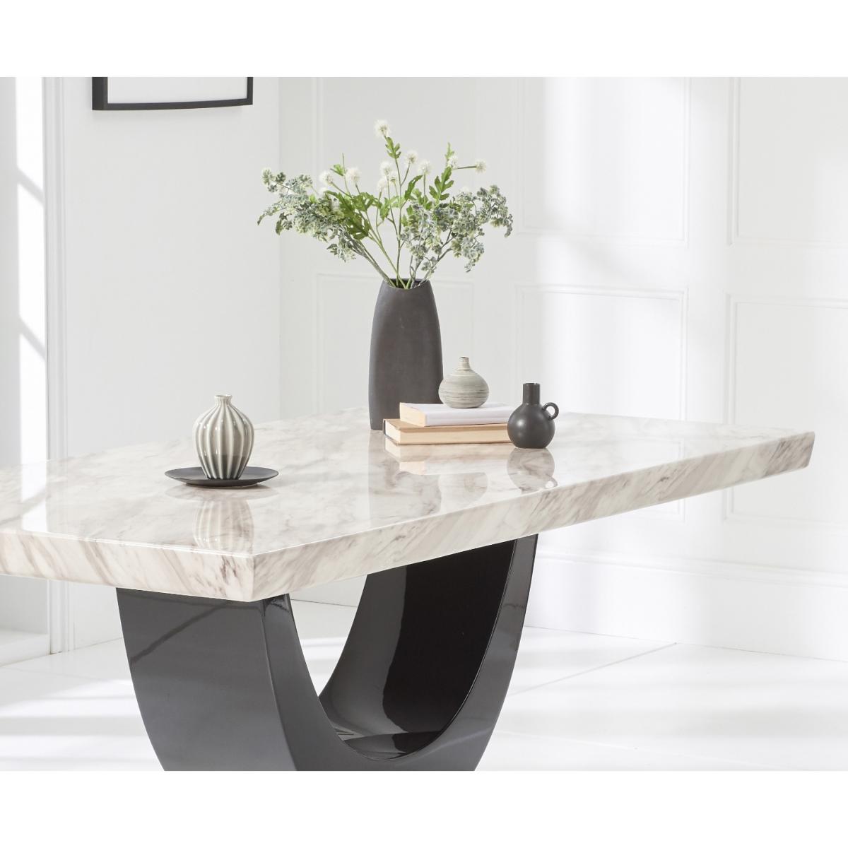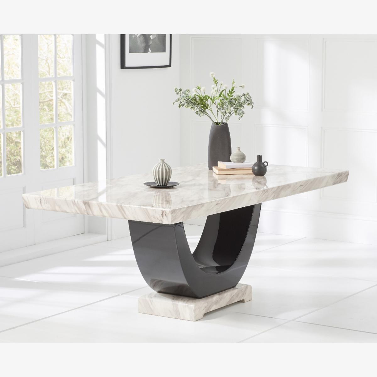 Novara 200cm Cream and Black Pedestal Marble Dining Table