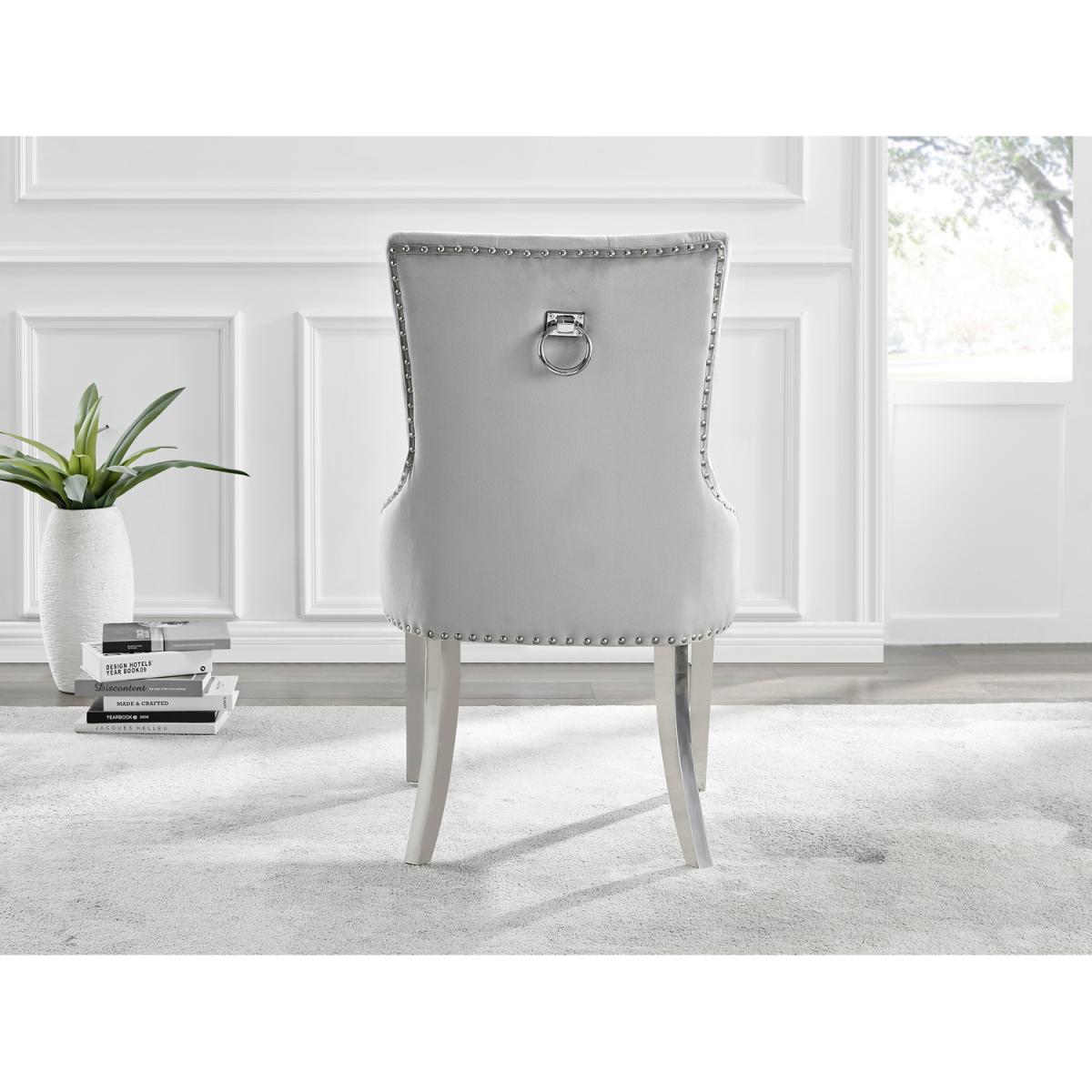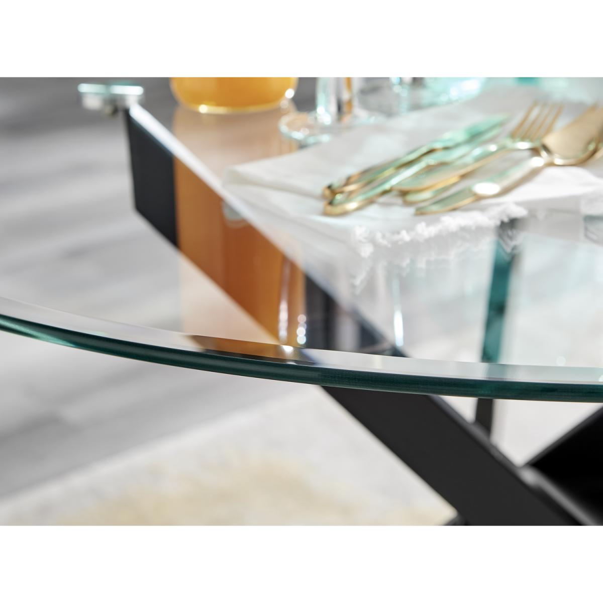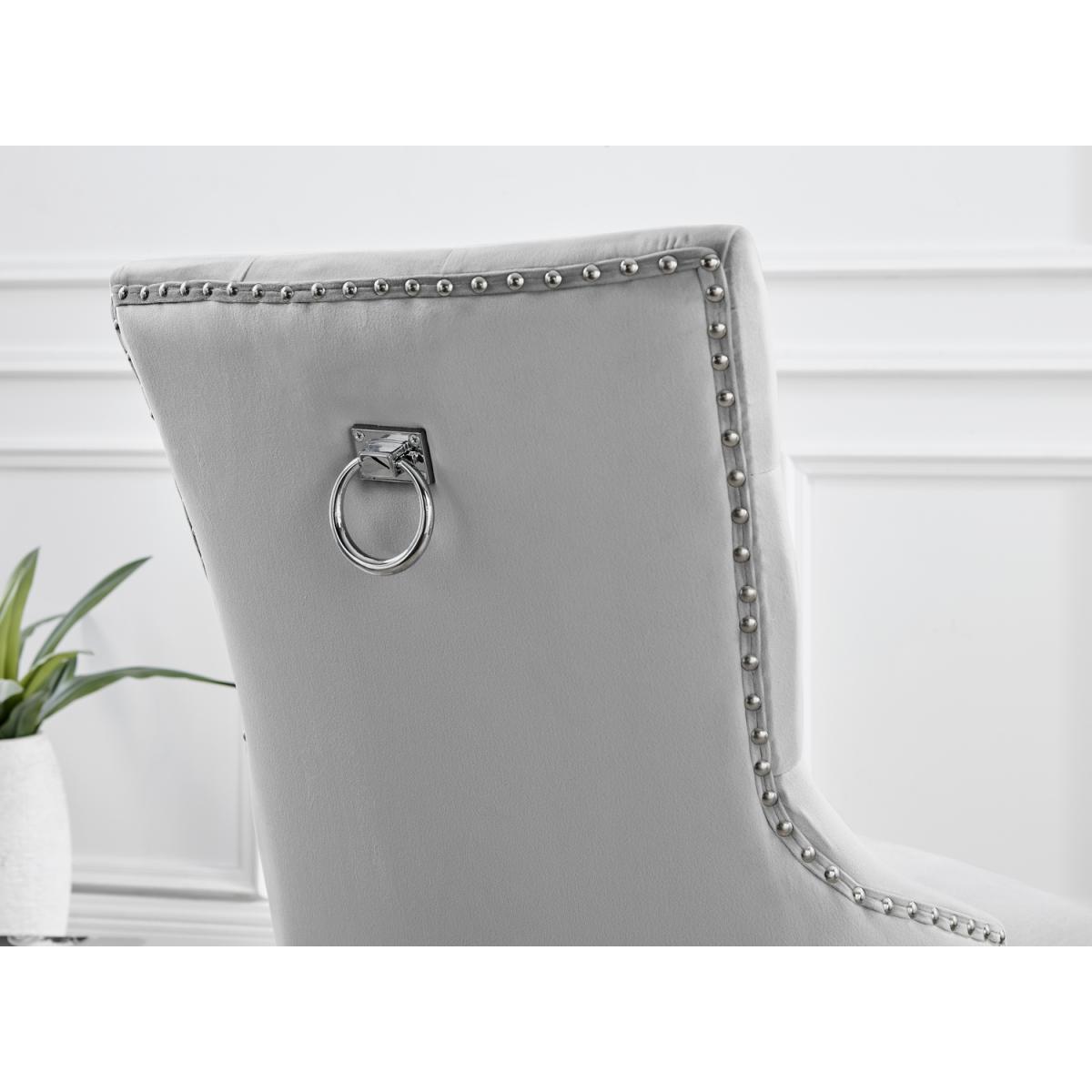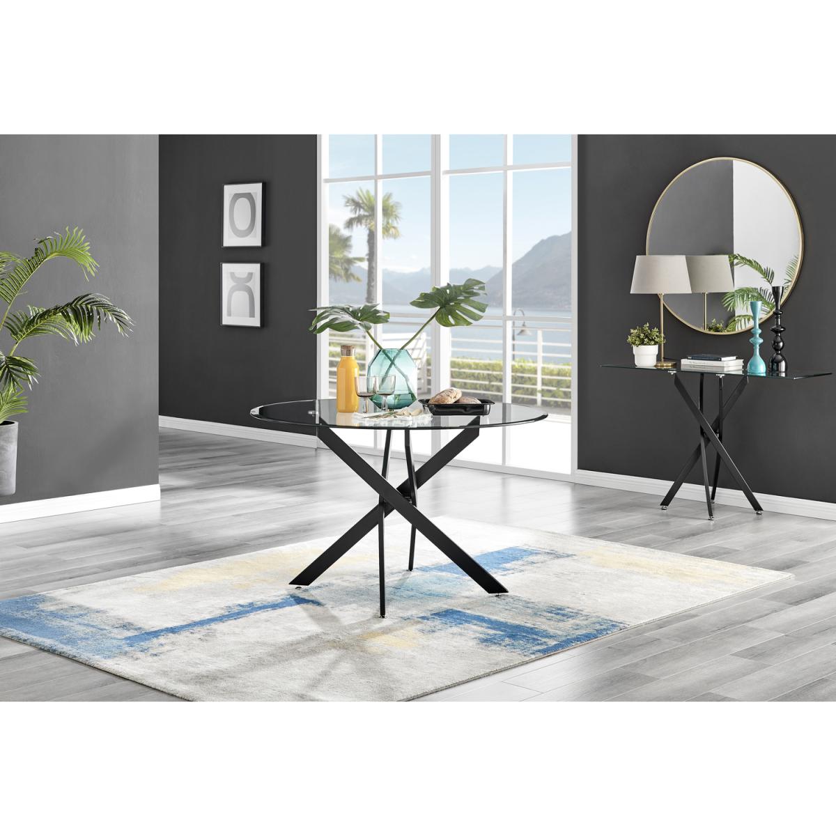 The strikingly elegant Novara dining table is a stylish and modern combination of black metal and glass, making this item a real eye-catcher. The sleek black legs provide a strong and sturdy support for the table, whilst the unique intertwined nest design exude modern style. This table really is capable of being a centre piece in any home! With a generous 120x120cm surface you can dine in style with up to 6 guests. The opulent Belgravia chairs provide a touch of luxury, with thickly padded velvet upholstery, and a striking knockerback detail. Anyone for a lovely dinner party or some cocktails.