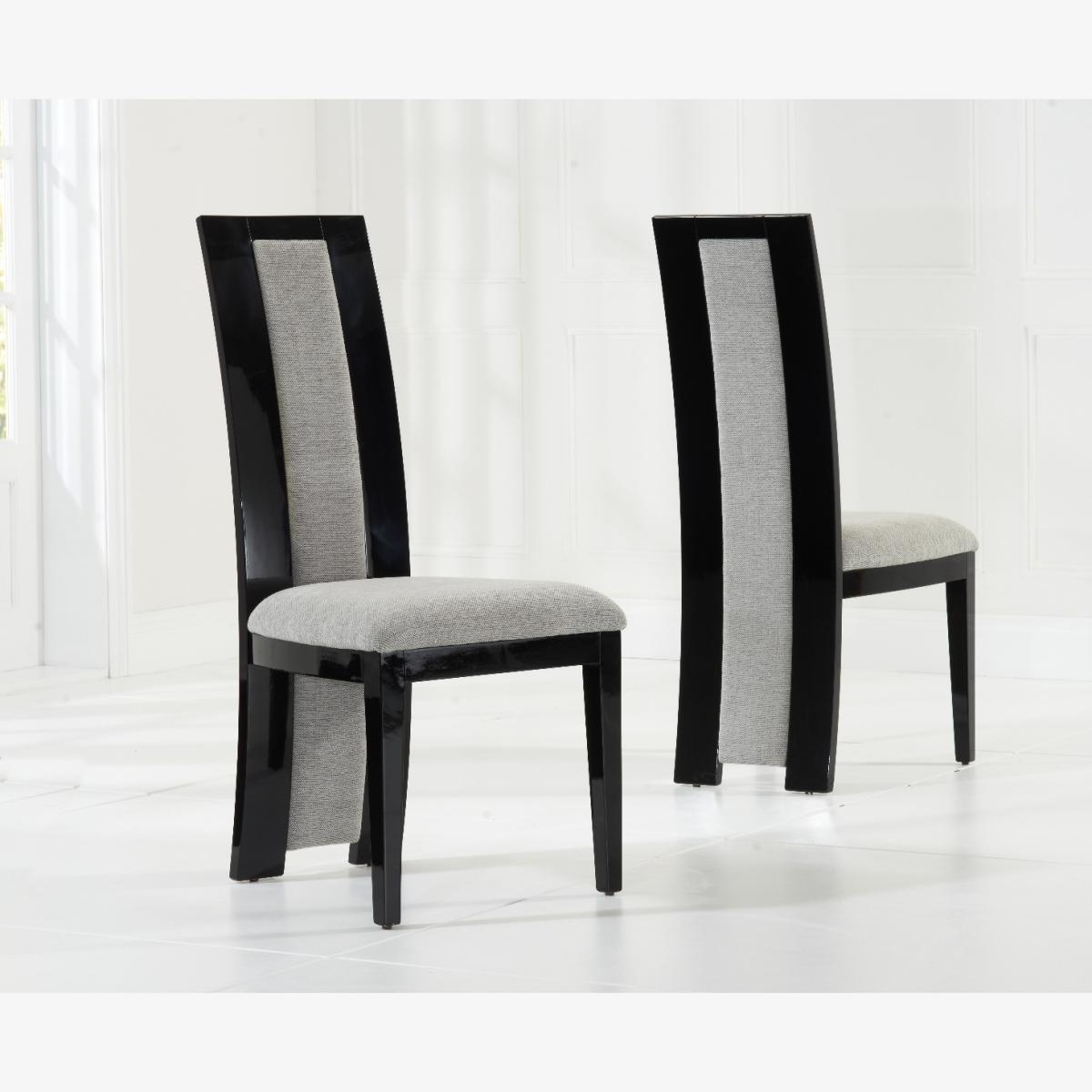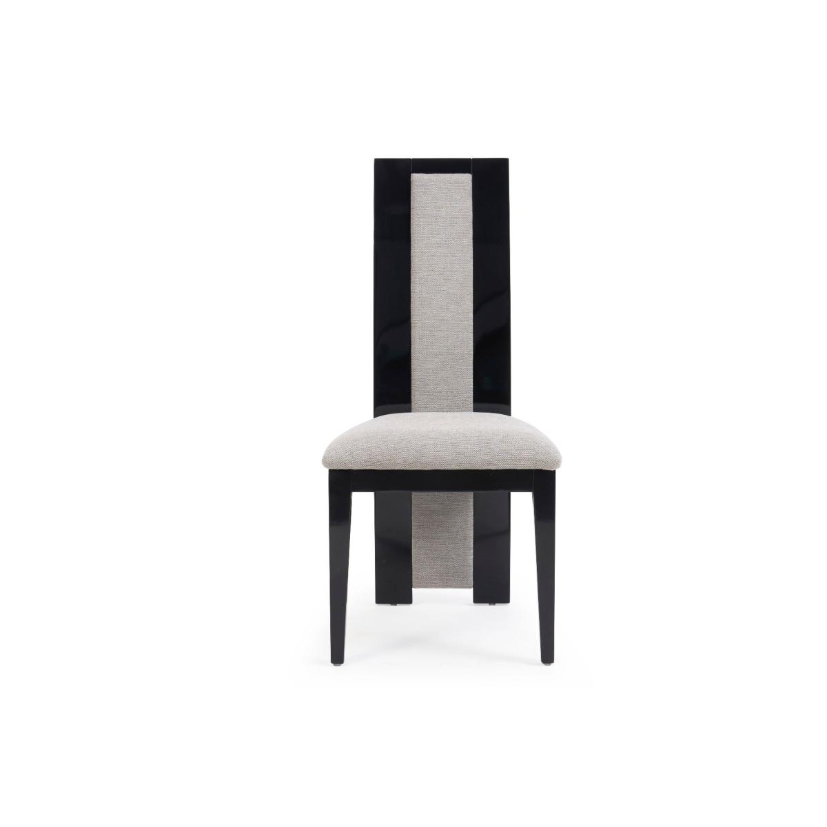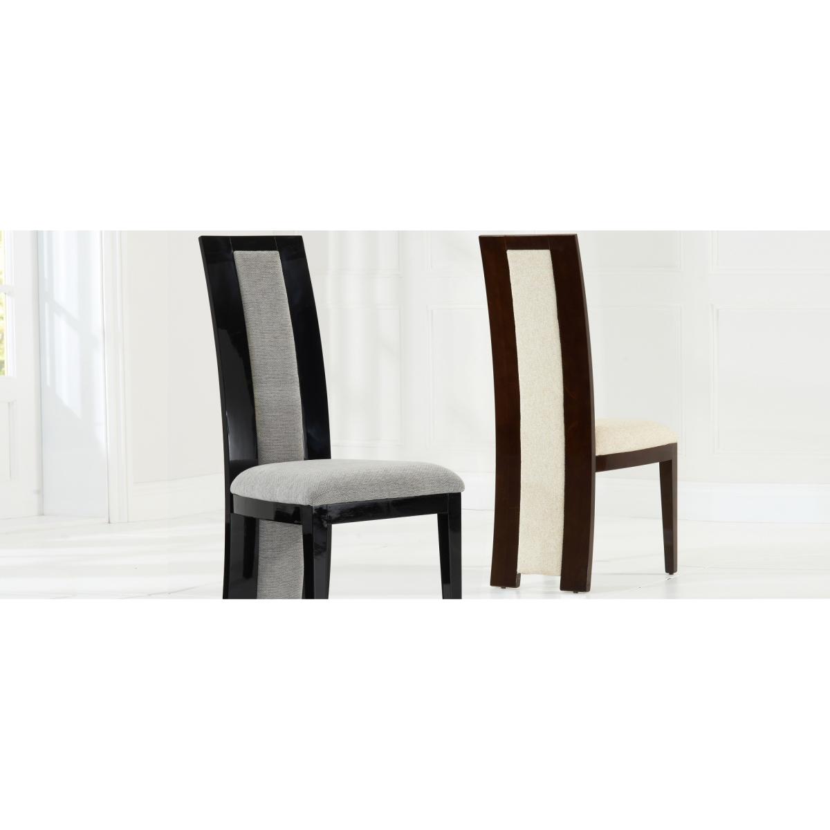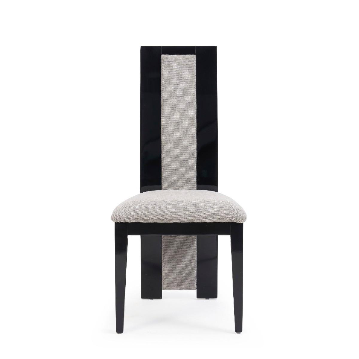 Gorgeous solid wood lines the back of these striking and modern dining chairs