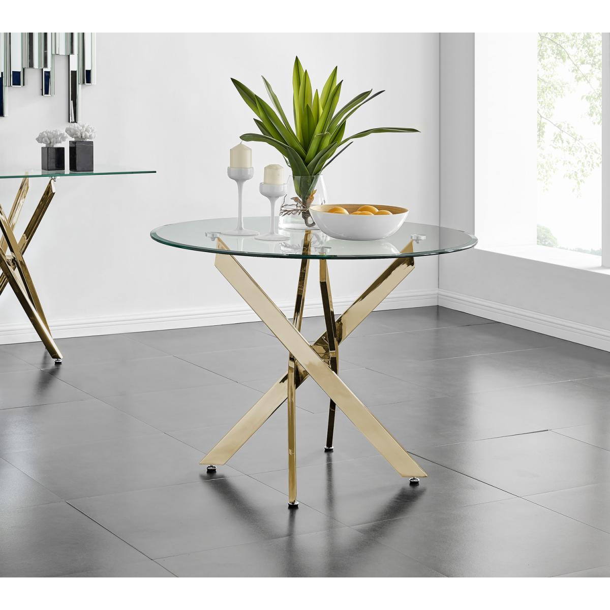 Novara Gold Metal 100cm Round Glass Dining Table - Yellow