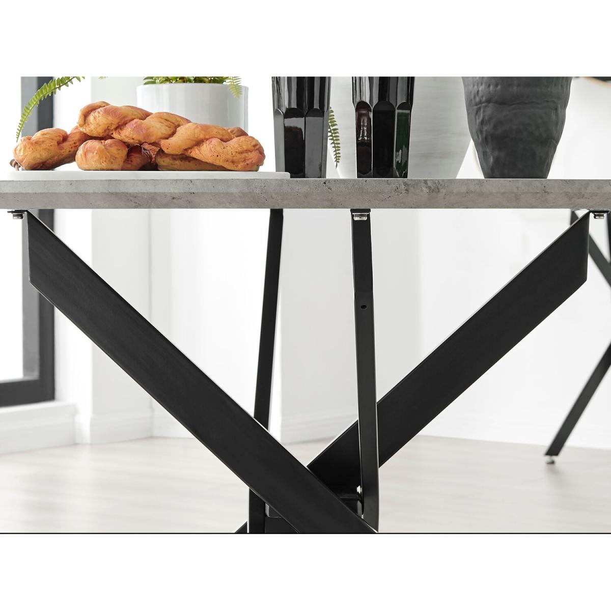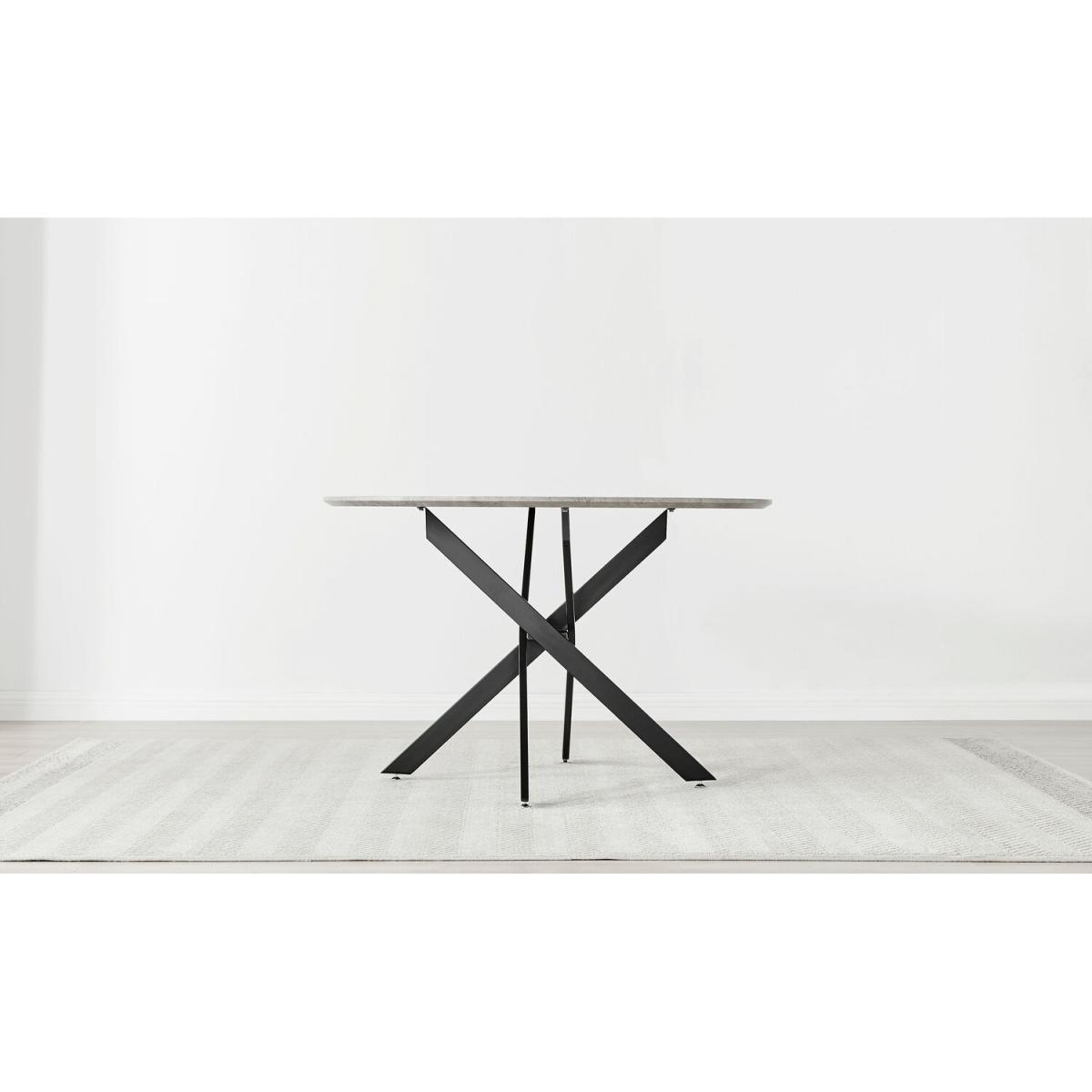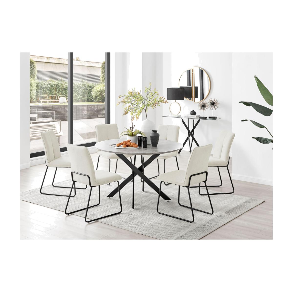 Novara Grey Concrete Black Leg 120cm Dining Table 6 Halle Chairs - Cream