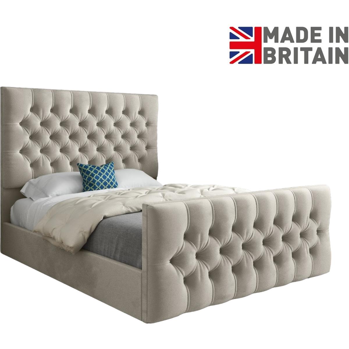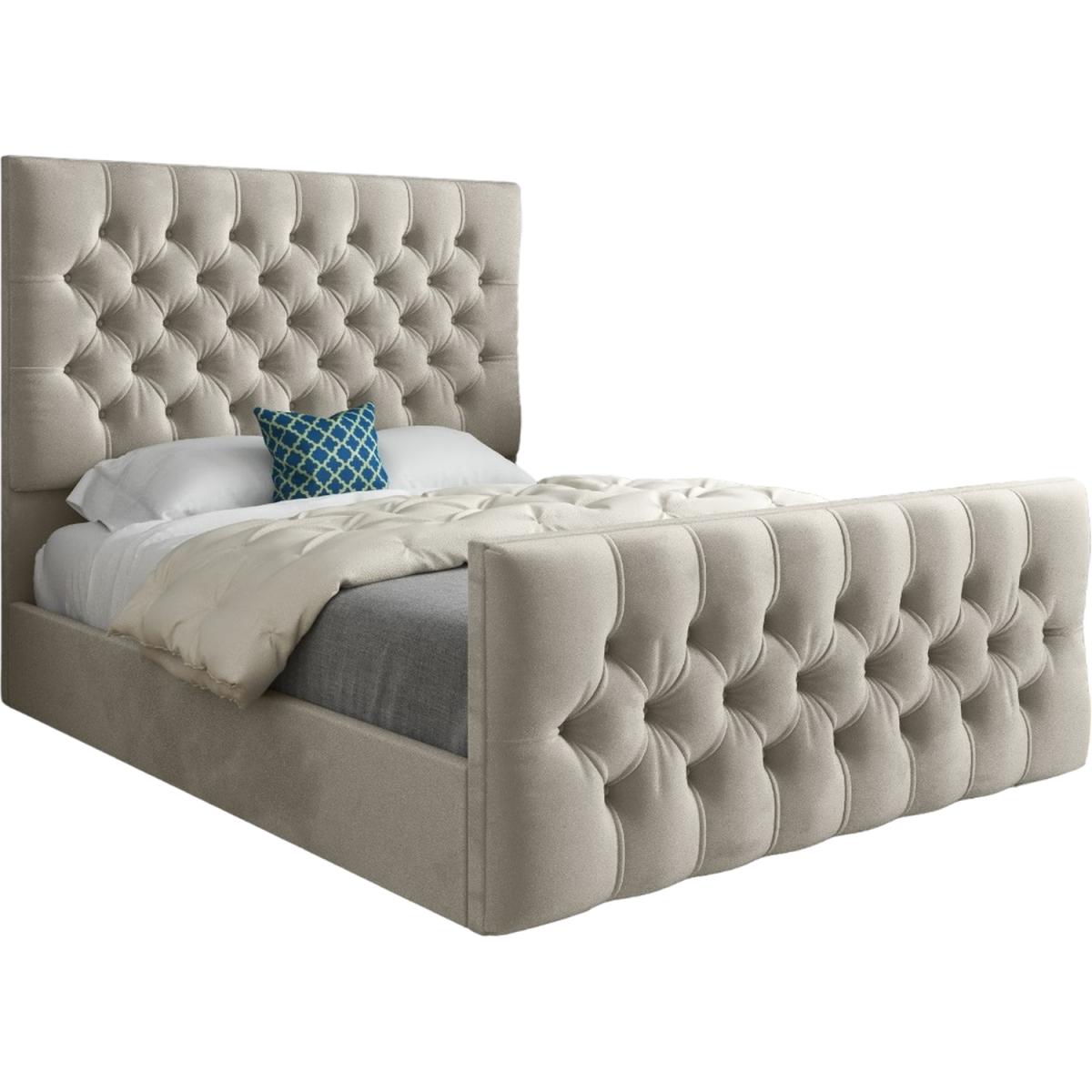 Novara Upholstered Soft Velvet Bed Frame - Cream / King