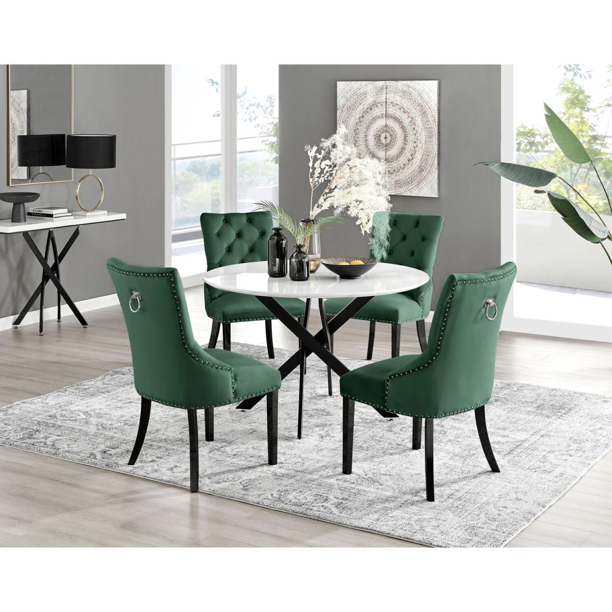 Novara White High Gloss Black Leg 120cm Table And 4 Belgravia Black Leg Chairs - Green
