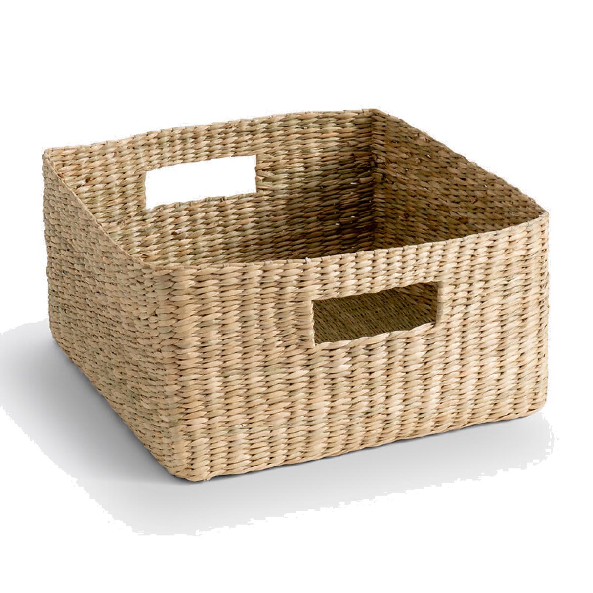 Practical, with a natural aesthetic. Designed in woven straw, the Nové basket brings a decorative touch to a library, a bedroom or even a bathroom. It's great for storing books, toys, lingerie, socks, beauty accessories...Why not make it your storage staple?Product Details • Woven grass • 2 handles. Dimensions • Width: 31cm • Height: 15cm • Depth: 31cm