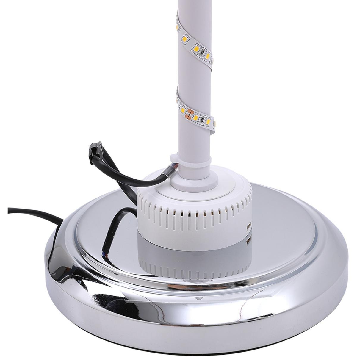 Brighten up your living space with this Modern White LED Novelty Floor Lamp Chrome Base from Livingandhome. Featuring graceful curves, it looks like a straw skirt, which is as much an art addition as it is functional. The white lamp body pairs perfectly with the sleek chrome base, creating a striking visual effect. Its energy-efficient LED technology ensures a long lifespan while providing gentle and soothing illumination.