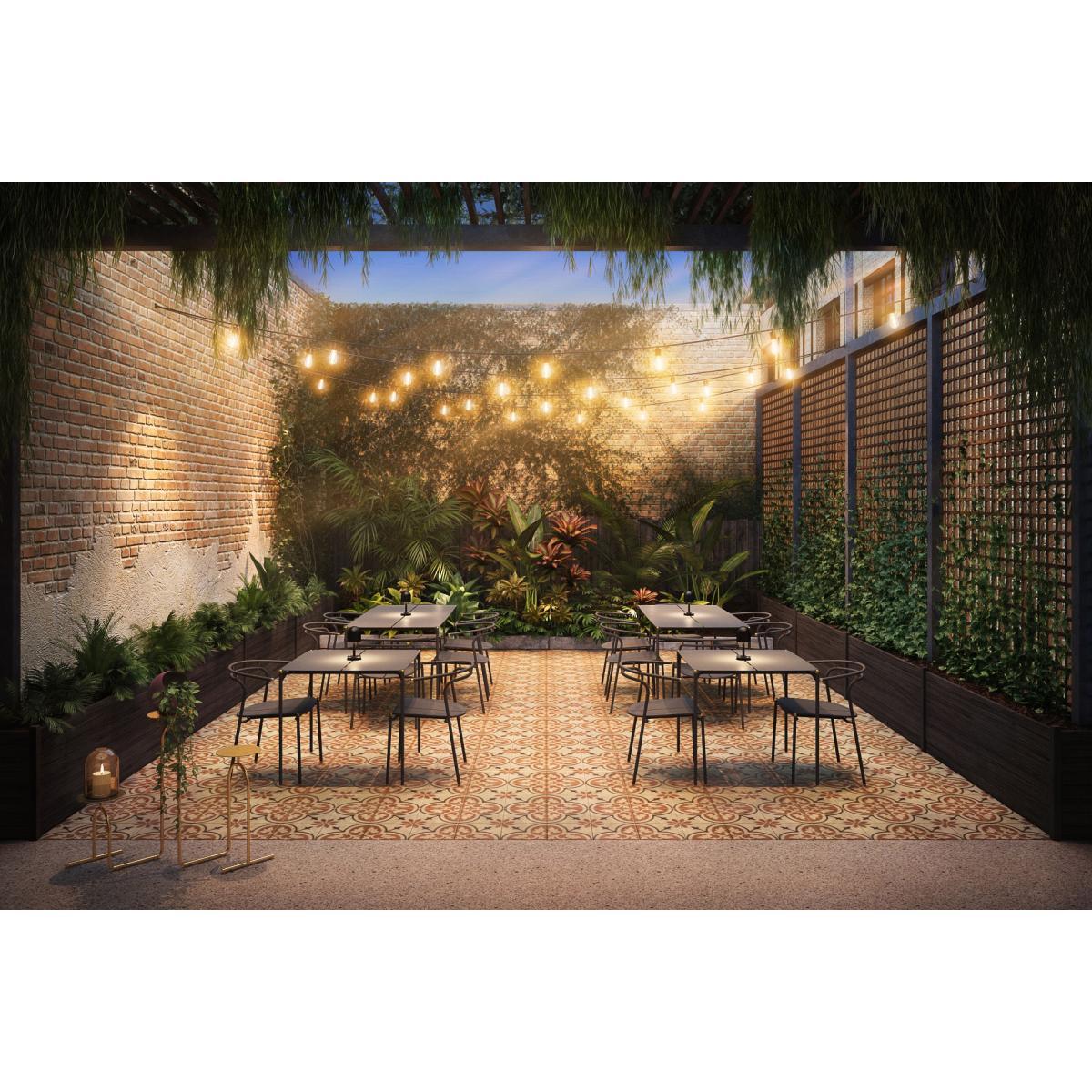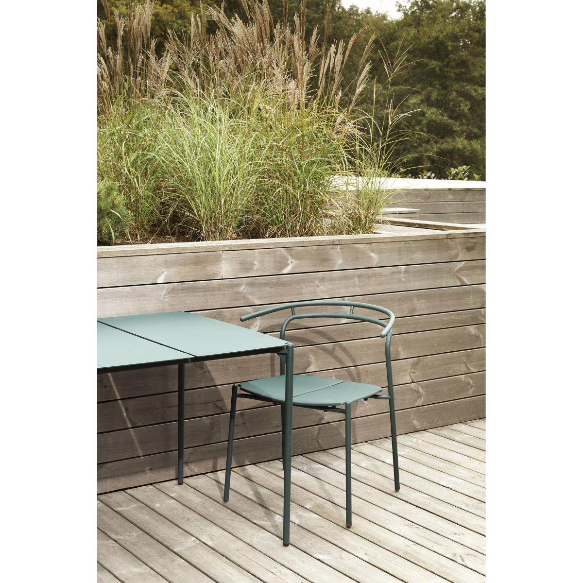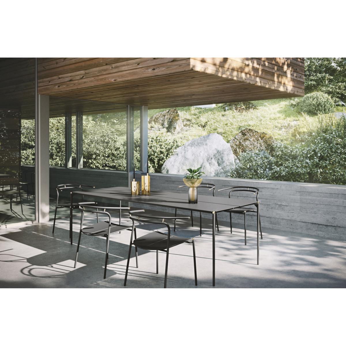 German designer Rasmus Falkenberg, winner of more than twenty international awards, has created a collection of metal outdoor furniture with light, graphic, modern lines. Robust and durable, this piece of steel and aluminium furniture has undergone specific treatments so that it perfectly resists bad weather and UV rays. All Novo's sophistication is concentrated in the attention to detail such as the folded edges of the seats or the slit that runs through the tops and seats, becoming the true graphic sign of the collection. In addition to its aesthetic function, this slit promotes rainwater drainage. The feet are attached to the outside of the tops and seats: this detail lightens the silhouette. An original touch which gives this furniture a personality of its own. Novo furniture combines irreproachable quality and durability: a perfect collection for creating a modern outdoor lounge or nice dining area on a terrace or in a kitchen. For a sophisticated look, Novo furniture is available with golden details.