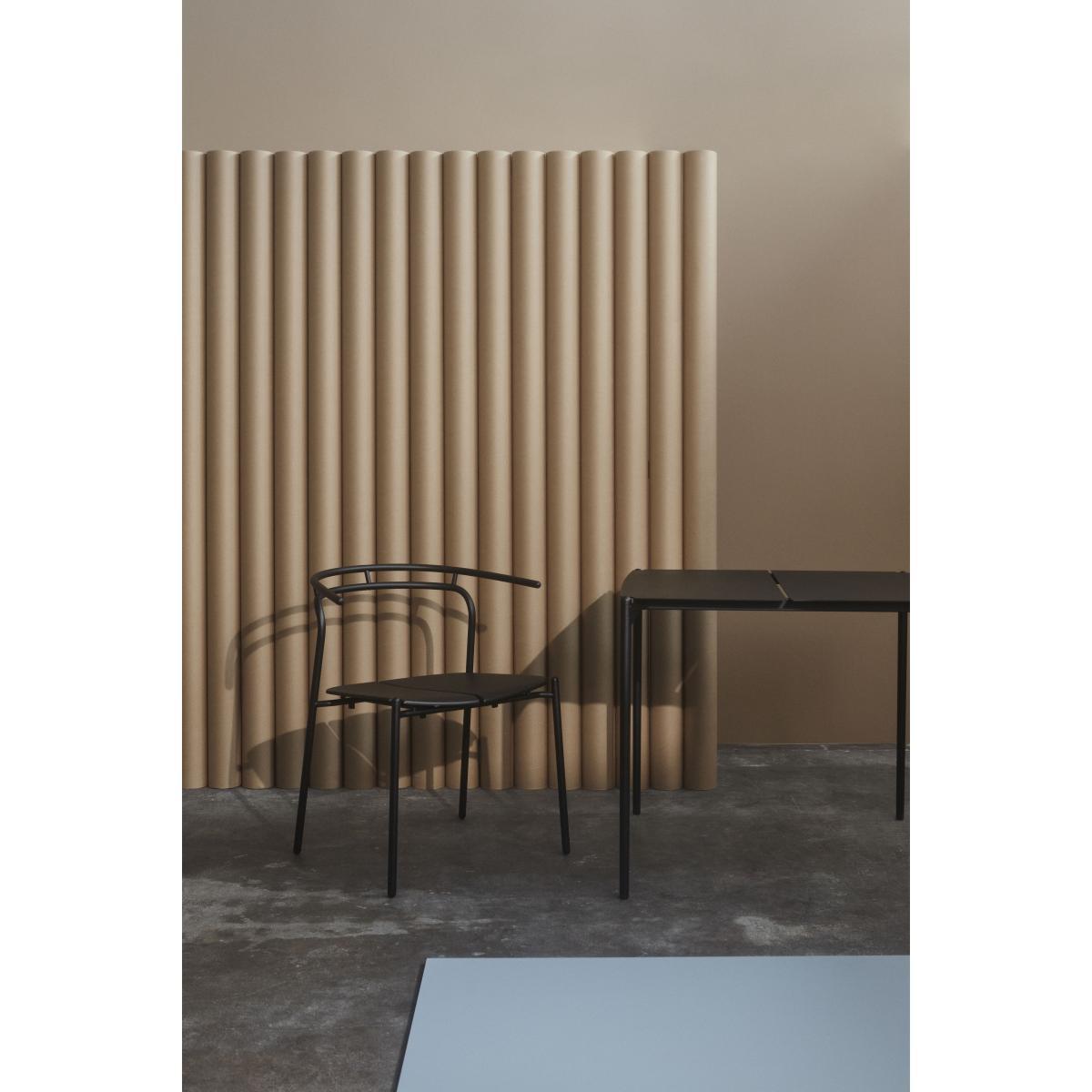 German designer Rasmus Falkenberg, winner of more than twenty international awards, has created a collection of metal outdoor furniture with light, graphic, modern lines. Robust and durable, this piece of steel and aluminium furniture has undergone specific treatments so that it perfectly resists bad weather and UV rays. All Novo's sophistication is concentrated in the attention to detail such as the folded edges of the seats or the slit that runs through the tops and seats, becoming the true graphic sign of the collection. In addition to its aesthetic function, this slit promotes rainwater drainage. The feet are attached to the outside of the tops and seats: this detail lightens the silhouette. An original touch which gives this furniture a personality of its own. Novo furniture combines irreproachable quality and durability: a perfect collection for creating a modern outdoor lounge or nice dining area on a terrace or in a kitchen. For a sophisticated look, Novo furniture is available with golden details.