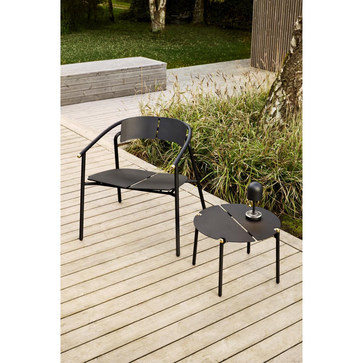 German designer Rasmus Falkenberg, winner of more than twenty international awards, has created a collection of metal outdoor furniture with light, graphic, modern lines. Robust and durable, this piece of steel and aluminium furniture has undergone specific treatments so that it perfectly resists bad weather and UV rays. All Novo's sophistication is concentrated in the attention to detail such as the folded edges of the seats or the slit that runs through the tops and seats, becoming the true graphic sign of the collection. In addition to its aesthetic function, this slit promotes rainwater drainage. The feet are attached to the outside of the tops and seats: this detail lightens the silhouette. An original touch which gives this furniture a personality of its own. Novo furniture combines irreproachable quality and durability: a perfect collection for creating a modern outdoor lounge or nice dining area on a terrace or in a kitchen. For a sophisticated look, Novo furniture is available with golden details.