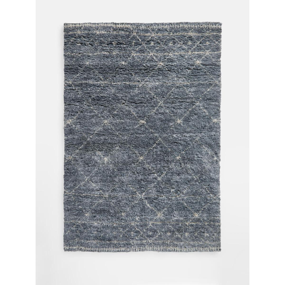 The vintage, Moroccan-style rugs found in Soho House Berlin formthe inspiration behind the Novo rug. Referencing flokati style, itboasts thick, long-haired tufts and a shaggy pile in steel-bluetones. Finished with a woven diamond pattern, lay it underfoot tosoften landings. Flokati-style rug. Fluffy, long-haired pile. Woven diamond pattern. Woven in Jaipur, India. Inspired by Soho House Berlin.
