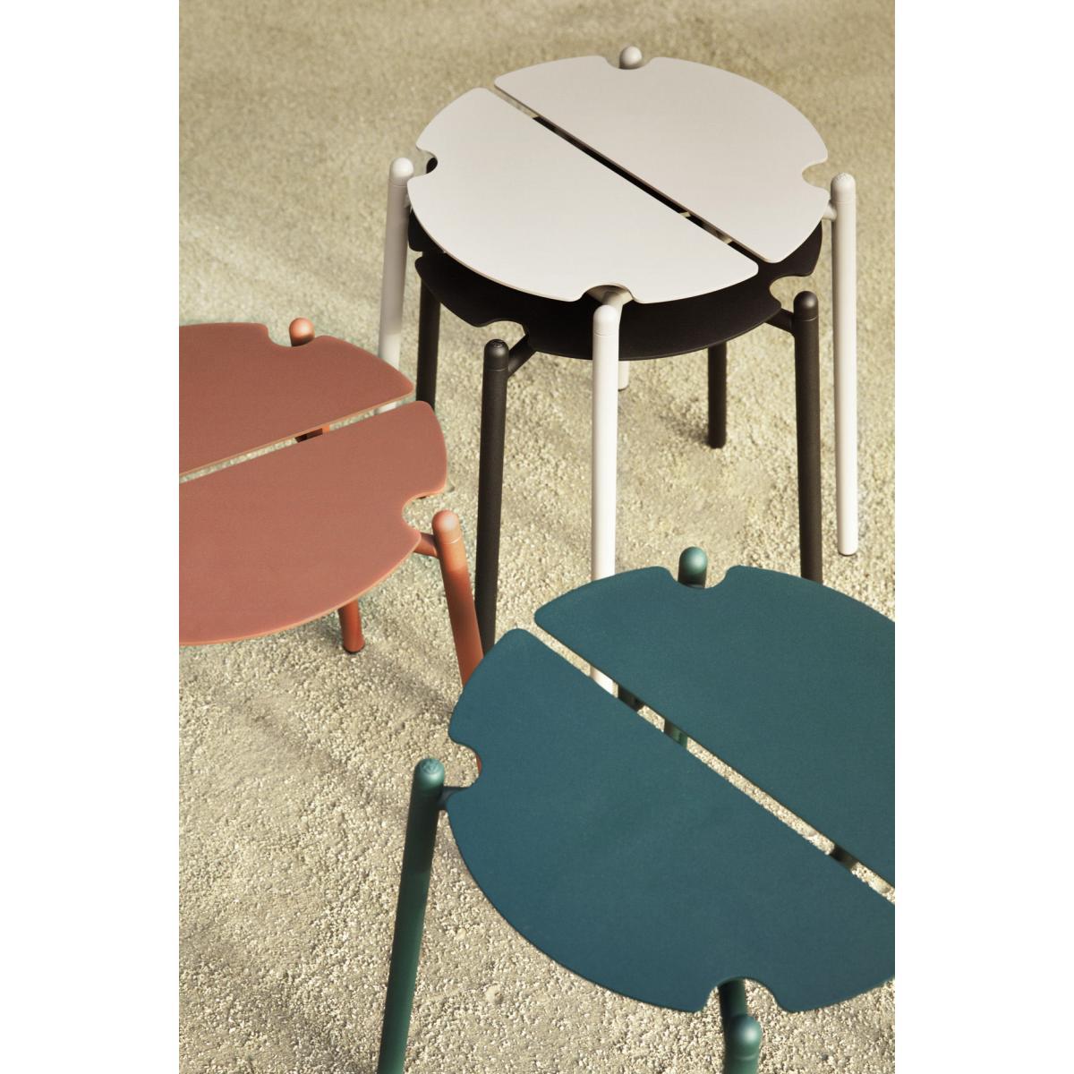 German designer Rasmus Falkenberg, winner of more than twenty international awards, has created a collection of metal outdoor furniture with light, graphic, modern lines. Robust and durable, this piece of steel and aluminium furniture has undergone specific treatments so that it perfectly resists bad weather and UV rays. All Novo's sophistication is concentrated in the attention to detail such as the folded edges of the seats or the slit that runs through the tops and seats, becoming the true graphic sign of the collection. In addition to its aesthetic function, this slit promotes rainwater drainage. The feet are attached to the outside of the tops and seats: this detail lightens the silhouette. An original touch which gives this furniture a personality of its own. Novo furniture combines irreproachable quality and durability: a perfect collection for creating a modern outdoor lounge or nice dining area on a terrace or in a kitchen. For a sophisticated look, Novo furniture is available with golden details.