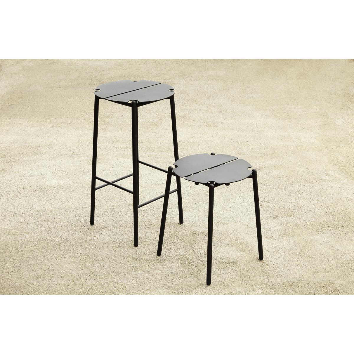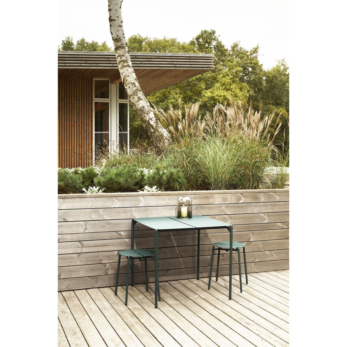 German designer Rasmus Falkenberg, winner of more than twenty international awards, has created a collection of metal outdoor furniture with light, graphic, modern lines. Robust and durable, this piece of steel and aluminium furniture has undergone specific treatments so that it perfectly resists bad weather and UV rays. All Novo's sophistication is concentrated in the attention to detail such as the folded edges of the seats or the slit that runs through the tops and seats, becoming the true graphic sign of the collection. In addition to its aesthetic function, this slit promotes rainwater drainage. The feet are attached to the outside of the tops and seats: this detail lightens the silhouette. An original touch which gives this furniture a personality of its own. Novo furniture combines irreproachable quality and durability: a perfect collection for creating a modern outdoor lounge or nice dining area on a terrace or in a kitchen. For a sophisticated look, Novo furniture is available with golden details.