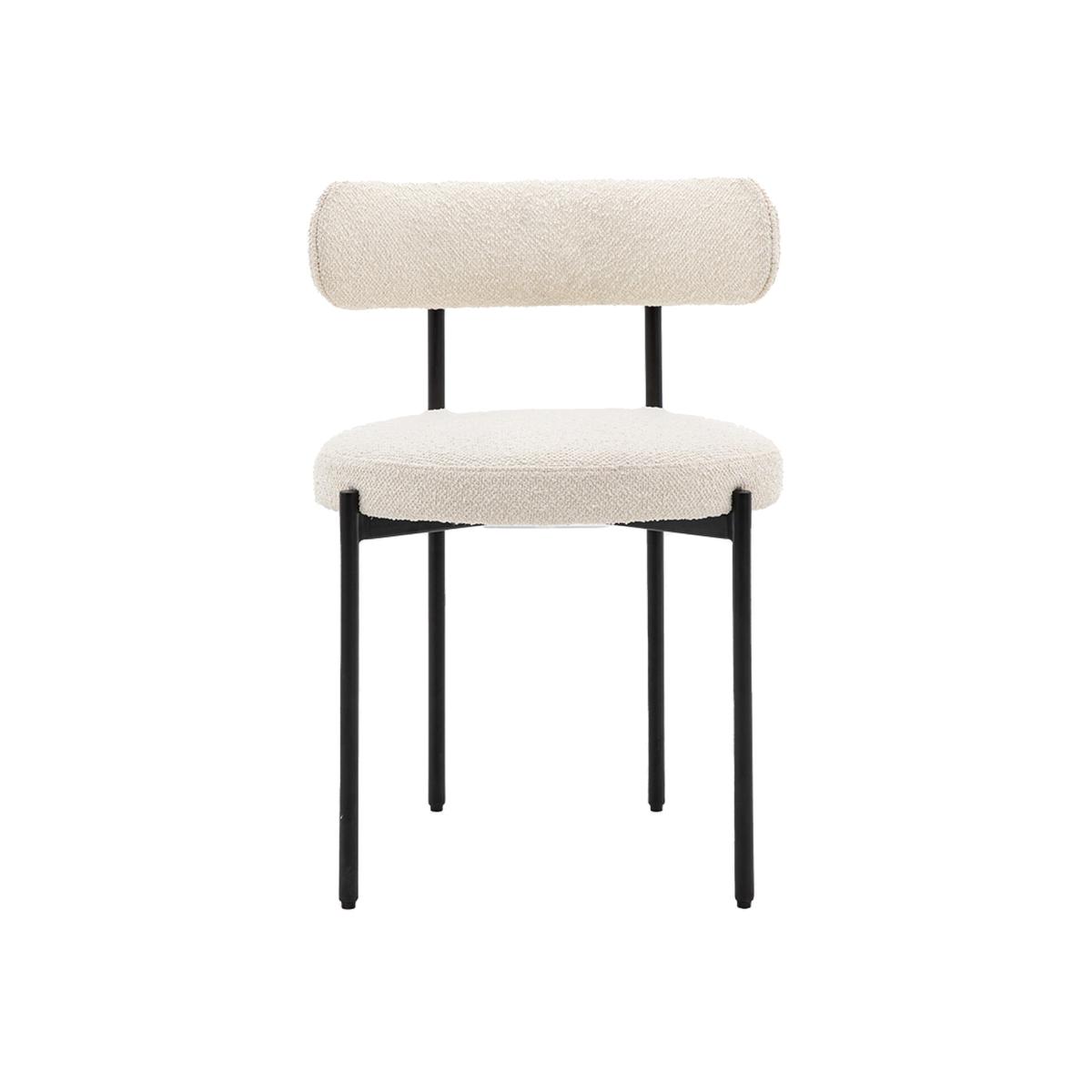 I’m a fan of these vanilla chairs for their clean lines and soft boucle upholstery - they bring a subtle texture without overwhelming a space. The slim black metal frame makes them versatile in Scandi, minimalist or contemporary settings, and the neutral tone pairs effortlessly with both light oak and darker dining tables. For styling, tuck them under a simple timber table to highlight their form, or dress them up with a subdued, mid-tone cushion if you want extra comfort. They work equally well in a small breakfast nook or as occasional seating in a living area, and the open design keeps sightlines clear in open-plan layouts.