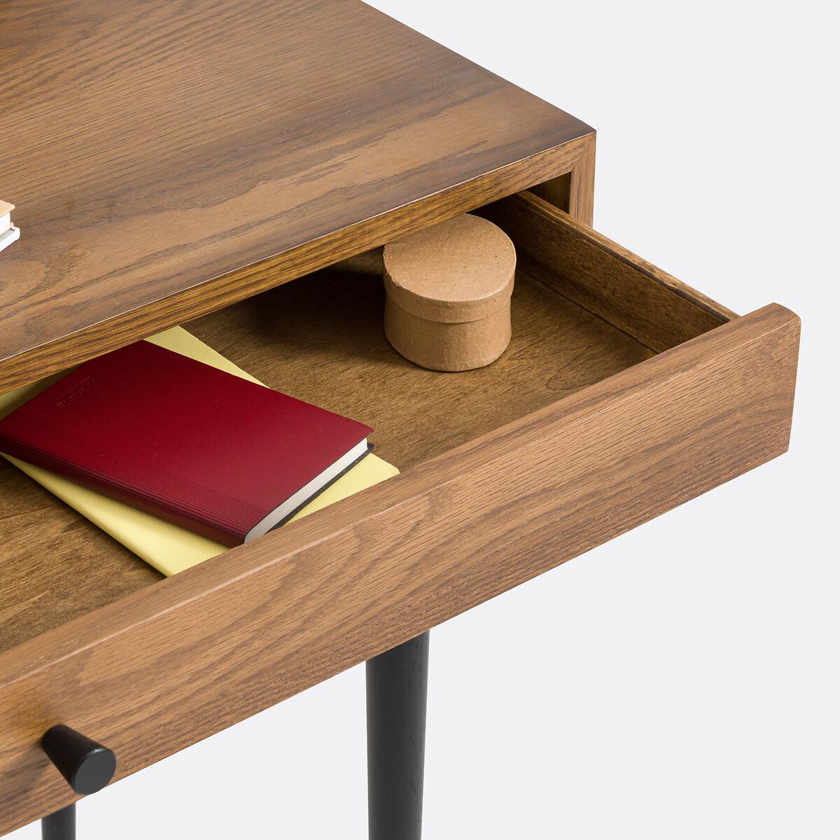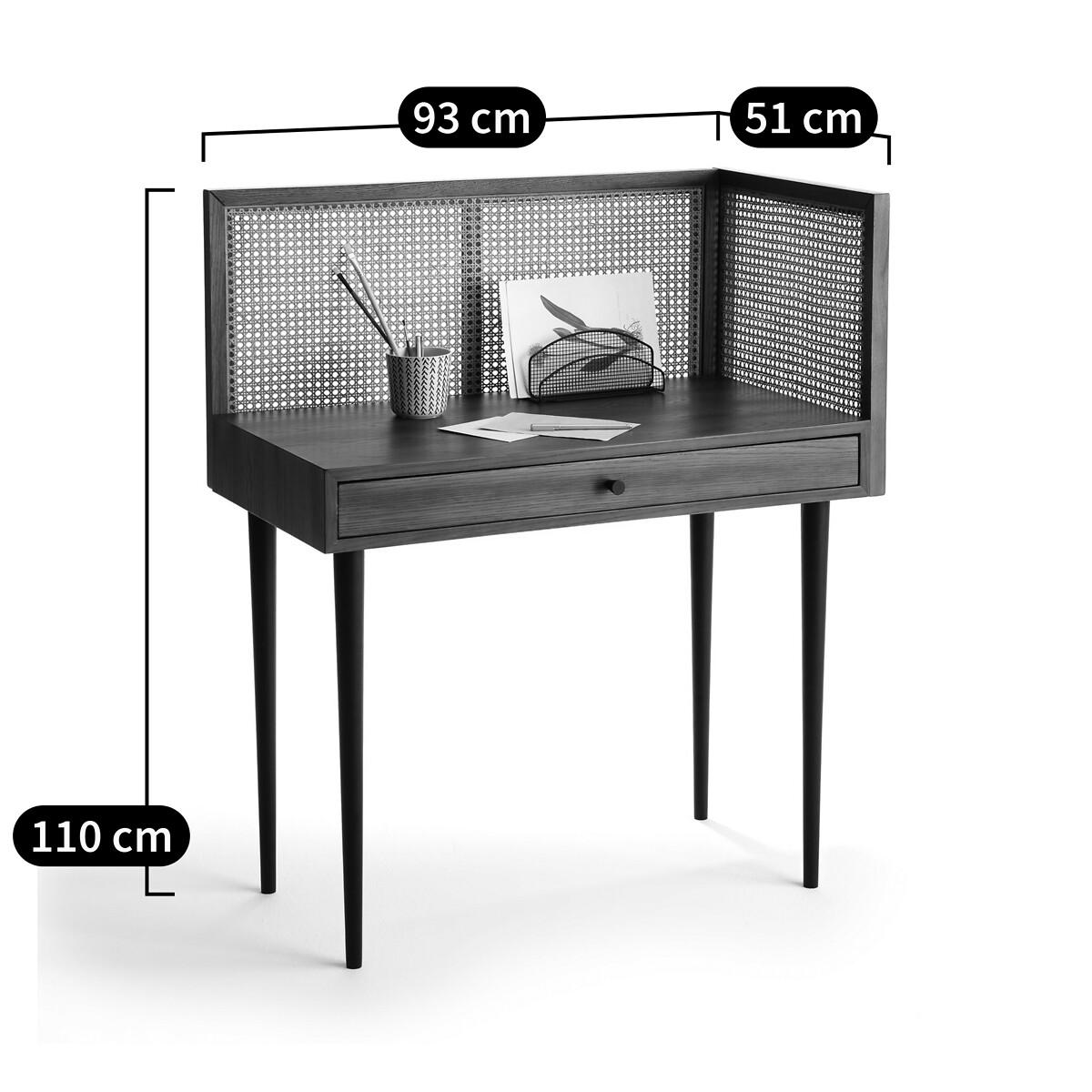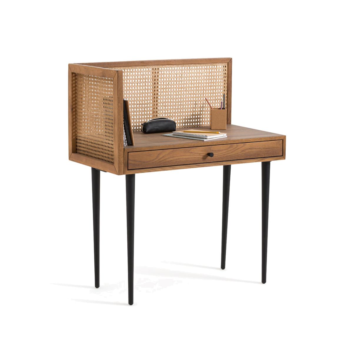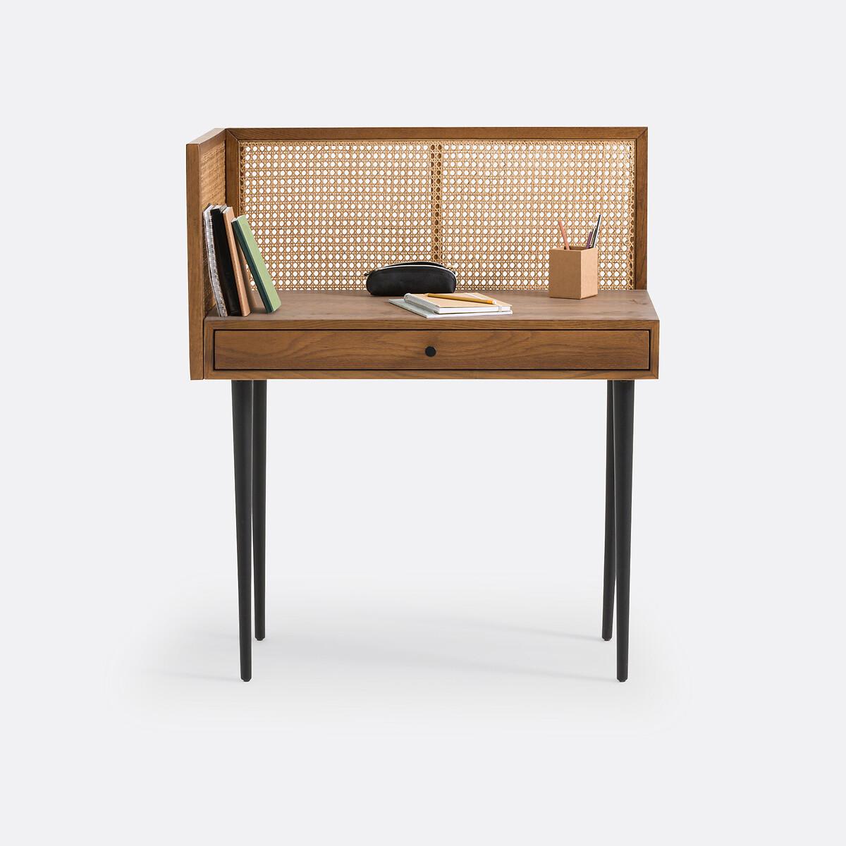 The Noya desk is equipped with reversible rattan panels. Its vintage spirit, its noble materials, its finishing qualities and its fifties design, bring a friendly and warm touch..