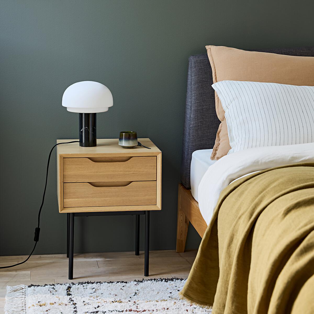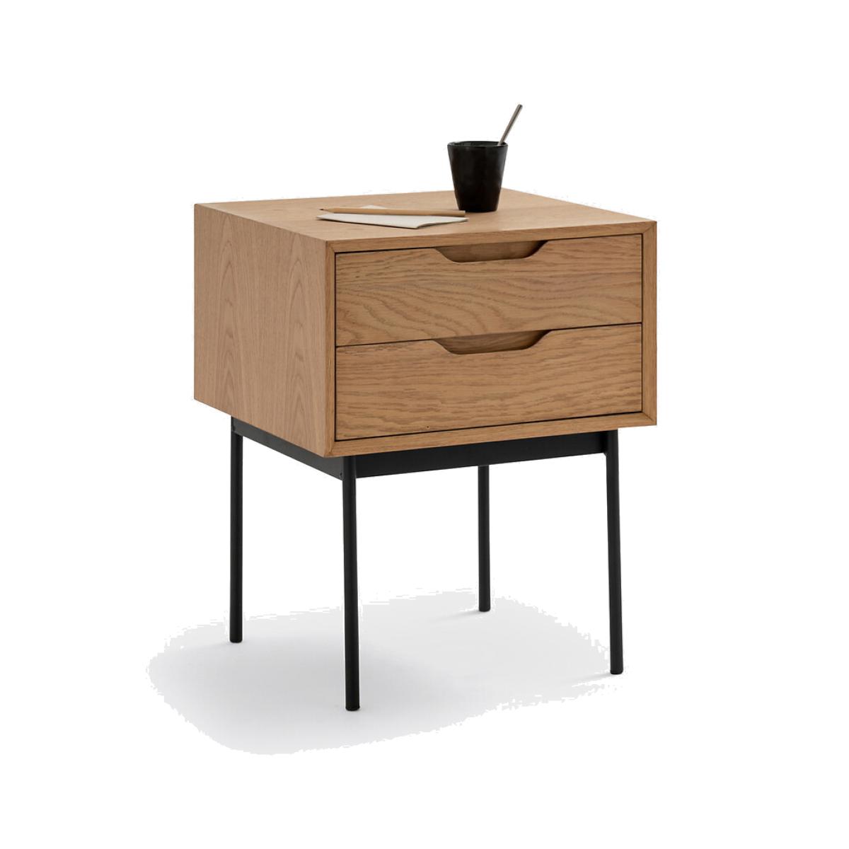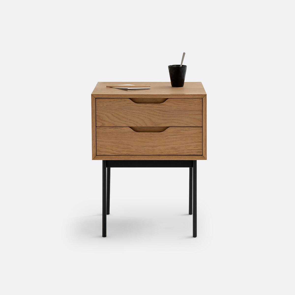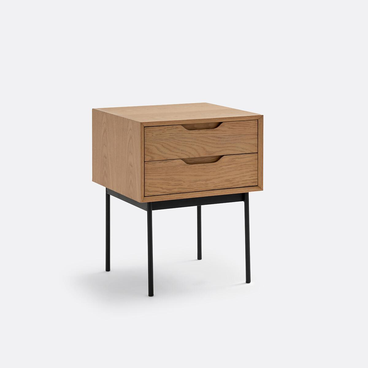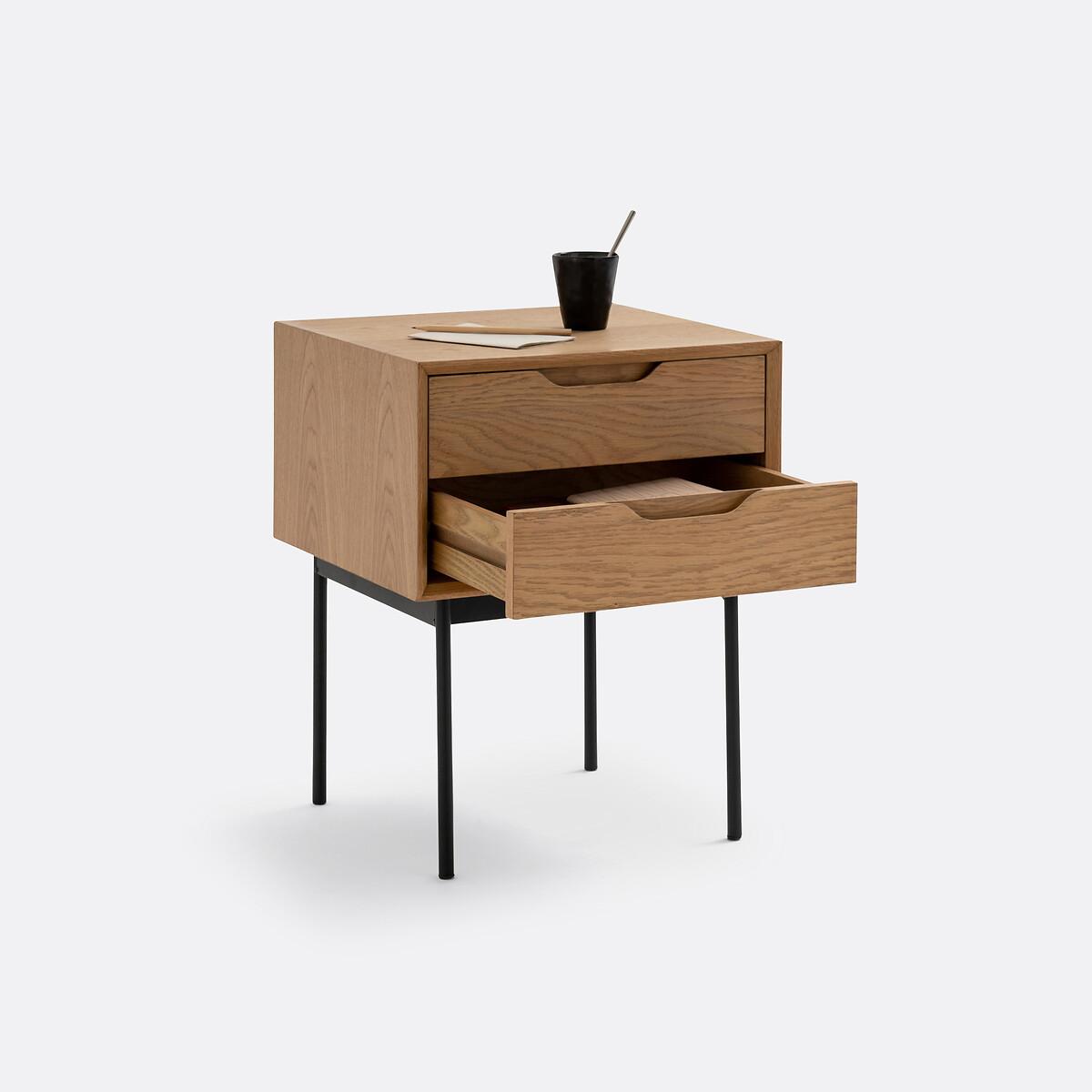 The Noyeto end table: the perfect combination of design and functionality. The combination of wood and metal allows it to adapt to all interior styles. It has 2 storage drawers. Created by La Redoute Interiors. Product Details • 2 drawers • In MDF with oak veneer or walnut veneer, nitrocellulose varnish finish • Metal legs with epoxy finish • Sold pre-assembledDimensions. Total: • Width: 43cm • Height: 55cm • Depth: 40cm. Usable dimensions: • Inside drawer: L34 x D28.5 x H8cm Delivery:Sold with feet to be attached. Available for home delivery. Note! Please check that all access points are large enough to accommodate your delivery (doors, stairs, lifts). Dimensions and weight of parcel1 parcel • L50 x H47 x D38cm. 14kg