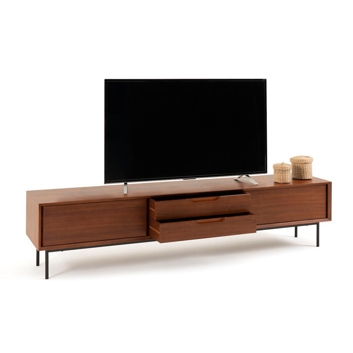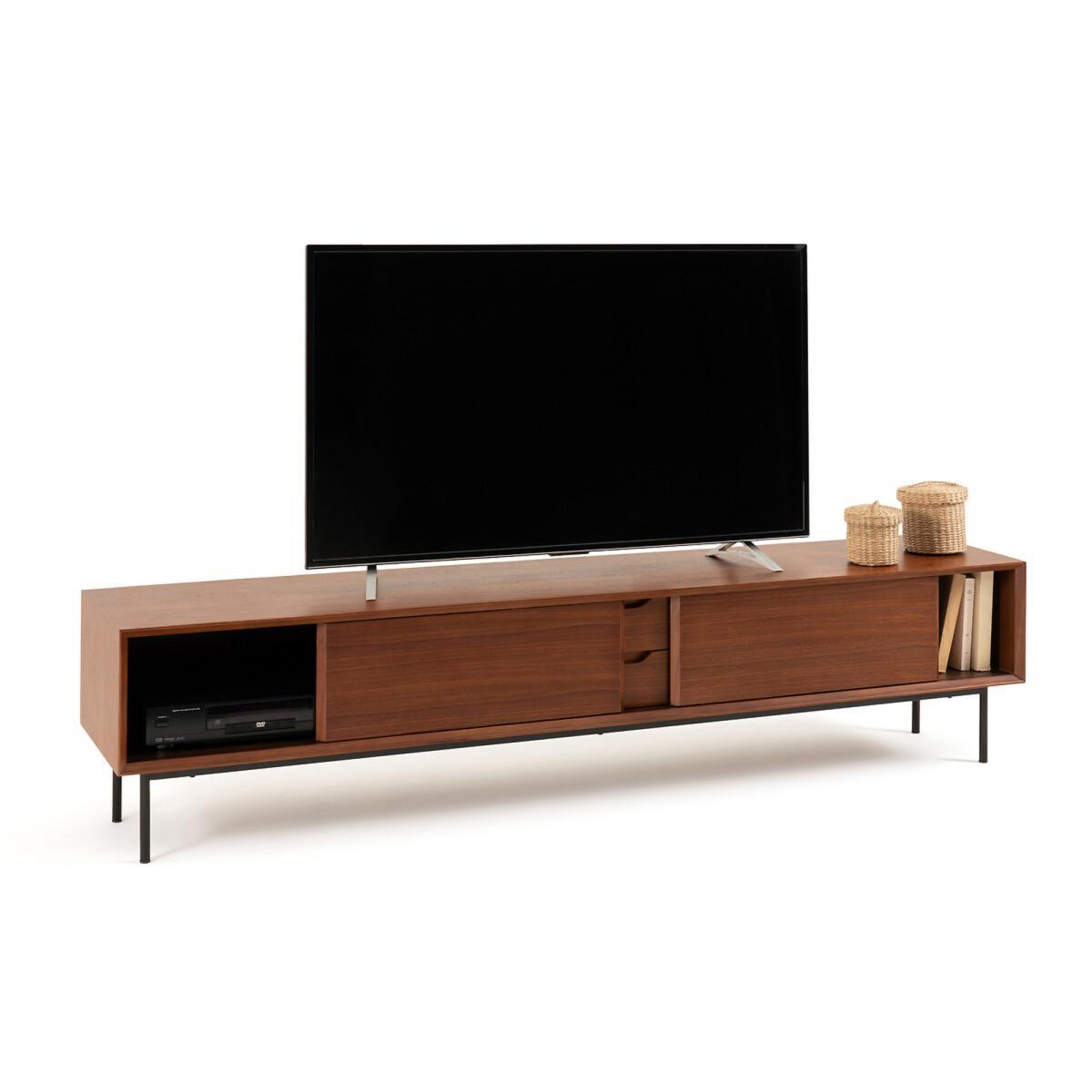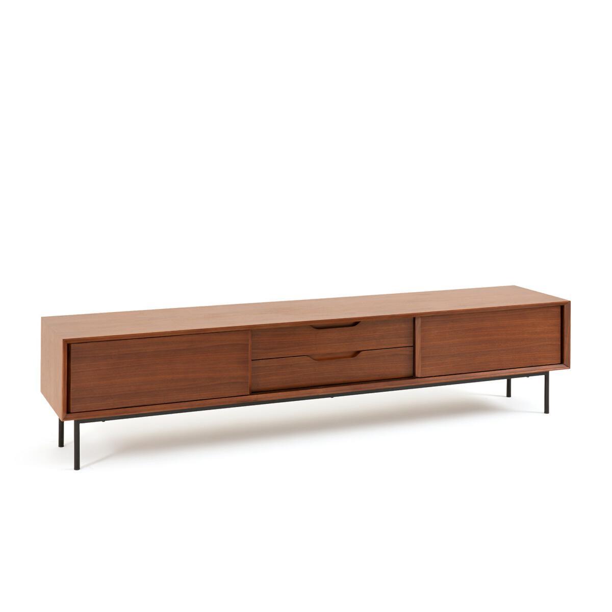 The perfect combination of design and functionality. The combination of dark wood and metal will suit all interior styles. This is a really practical pick: its sliding doors and drawers allow you to store magazines, remote controls... anything you might need