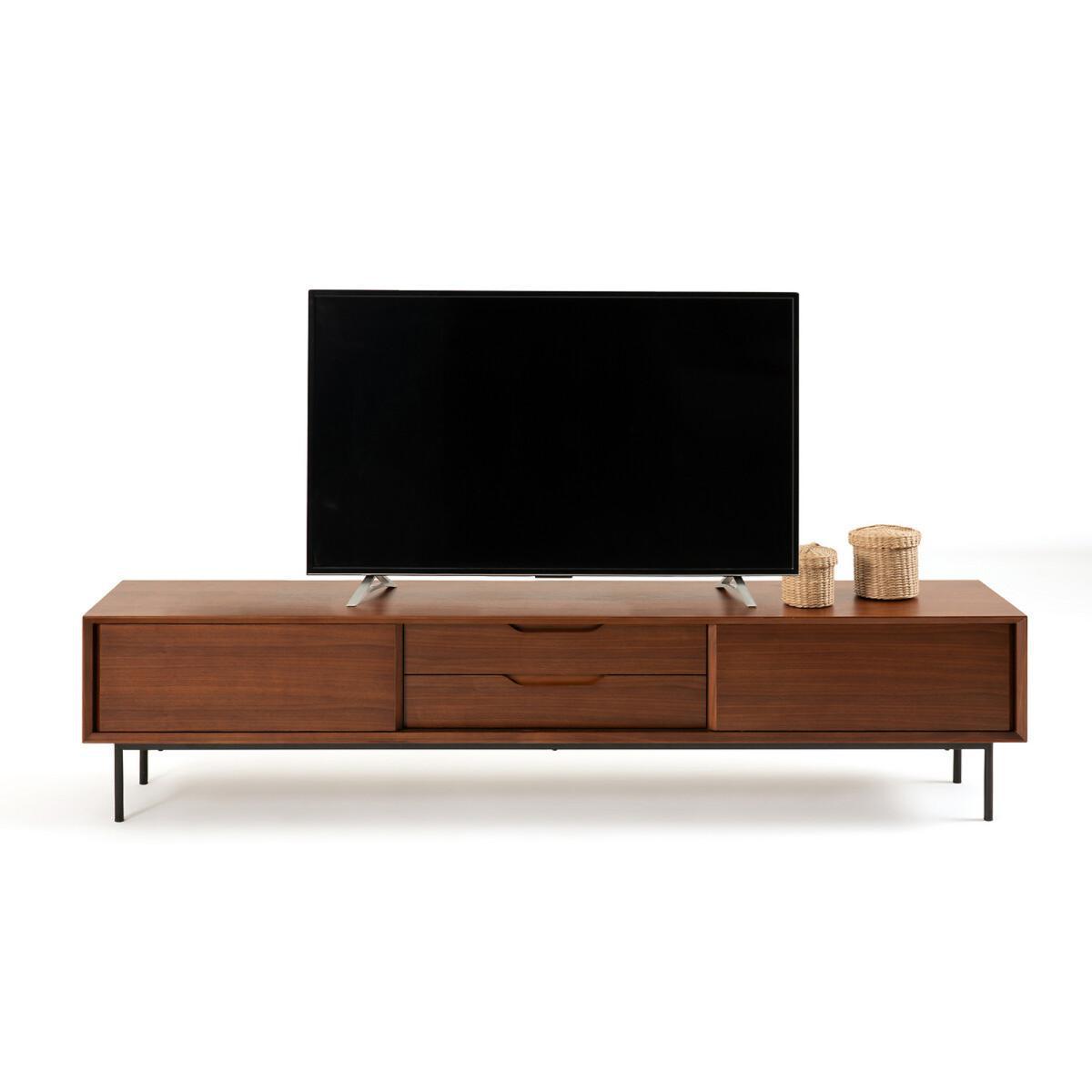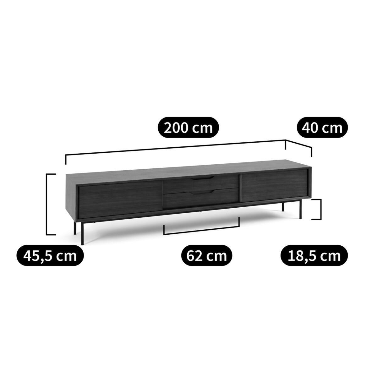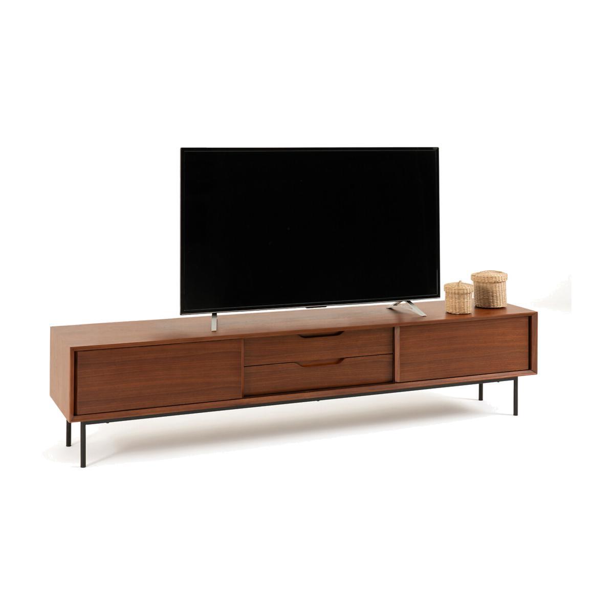 The perfect combination of design and functionality. The combination of dark wood and metal will suit all interior styles. This is a really practical pick: its sliding doors and drawers allow you to store magazines, remote controls... anything you might need