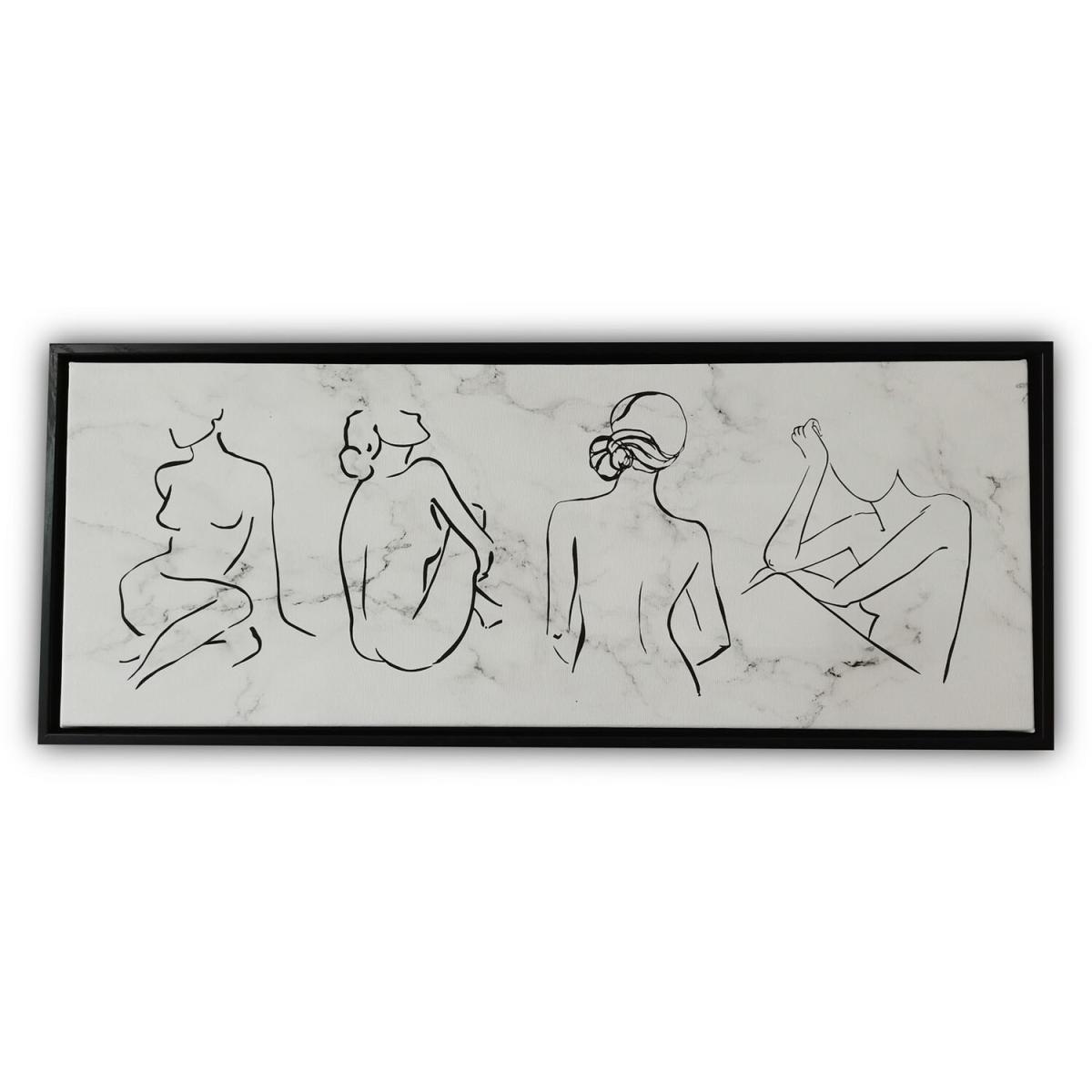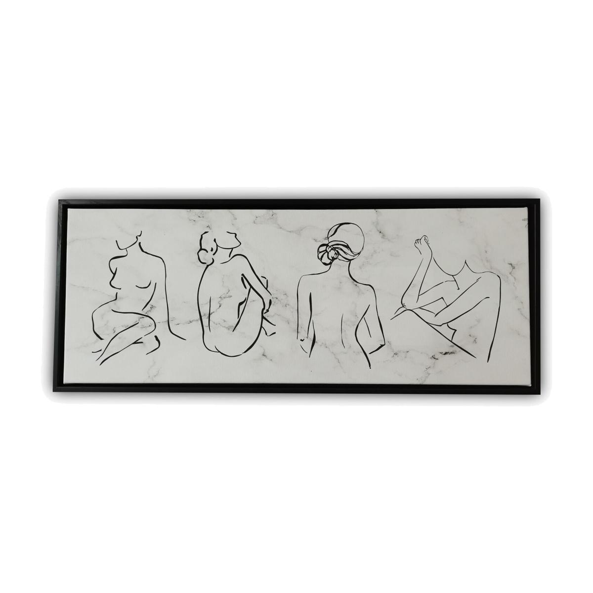 A beautifully tasteful piece for your wall, this Nude Sketches Canvas will add a touch of glamour to your wall. Featuring 4 charming nude sketches on a marbled background, this canvas oozes contemporary class and is sure to add interest to bare walls in your living room, bedroom, or hallway. Coming mounted in a black frame for a sleek, coordinated finish, this canvas is quick and easy to hang thanks to the hooks on the back.