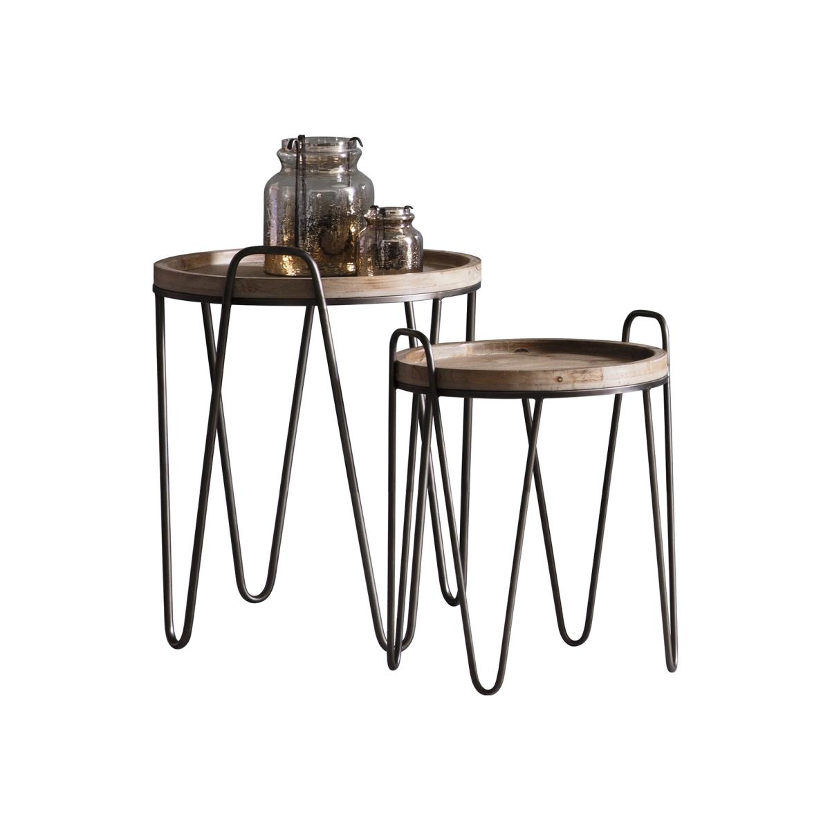 Dimensions. W51 x D51 x H62 cm Features. Set of 2 tables. Industrial style Tray table surface and hairpin metal legs. Perfect for extra surface space Assembly not required..