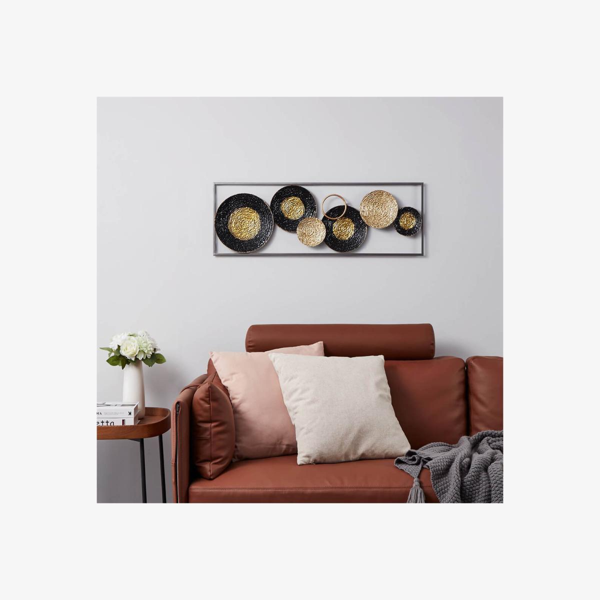 The Numazu wall decoration will give any room a stylish character. A metal decorative element with a round black and gold design will perfectly match your interior. The decorative addition will prove to be an absolute highlight on your wall. Fastening material is not included in the scope of delivery. The Numazu wall decoration will give any room a stylish character. A metal decorative element with a round black and gold design will perfectly match your interior. The decorative addition will prove to be an absolute highlight on your wall. Fastening material is not included in the scope of delivery.