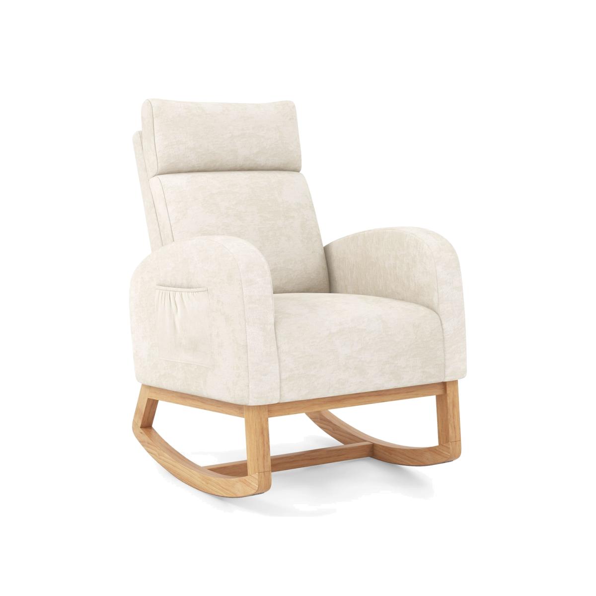 Rock to unwind with our rocking leisure chair! Thickened headrest, overstuffed backrest, and curved armrests ensure comfortable support. The soft Chenille fabric and sponge take its seating comfort to a higher level. You can also rock to elevate relaxation. You can sit on the chair to relax in the living room, bedroom, studio, and more. The rocking armchair has 2 magazine pockets to place your items. Additionally, the anti-crack rubber wood frame makes it strong and sturdy, which will accompany you for years.