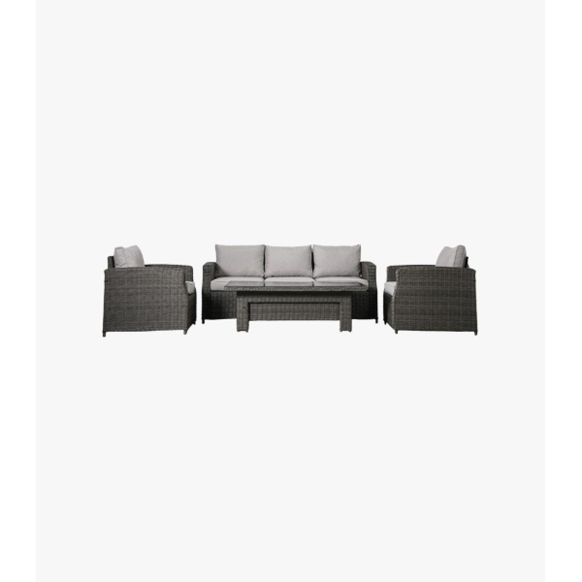 I love this garden set for its versatility and understated style, making it a great choice for both contemporary and more traditional outdoor spaces. The grey hue is neutral enough to blend seamlessly with various colour schemes, while the rattan effect adds a touch of texture that keeps it visually interesting. It works well in open-plan patios or semi-enclosed terraces where comfort and durability are key. To style it effectively, consider layering with outdoor cushions in colour pops or muted tones for added comfort, and pair it with a simple outdoor rug to define the seating area. Practical tips include keeping the cushions weather-proof and ensuring the set is positioned in a shaded spot to prolong its lifespan, making it both stylish and functional for relaxed outdoor living.