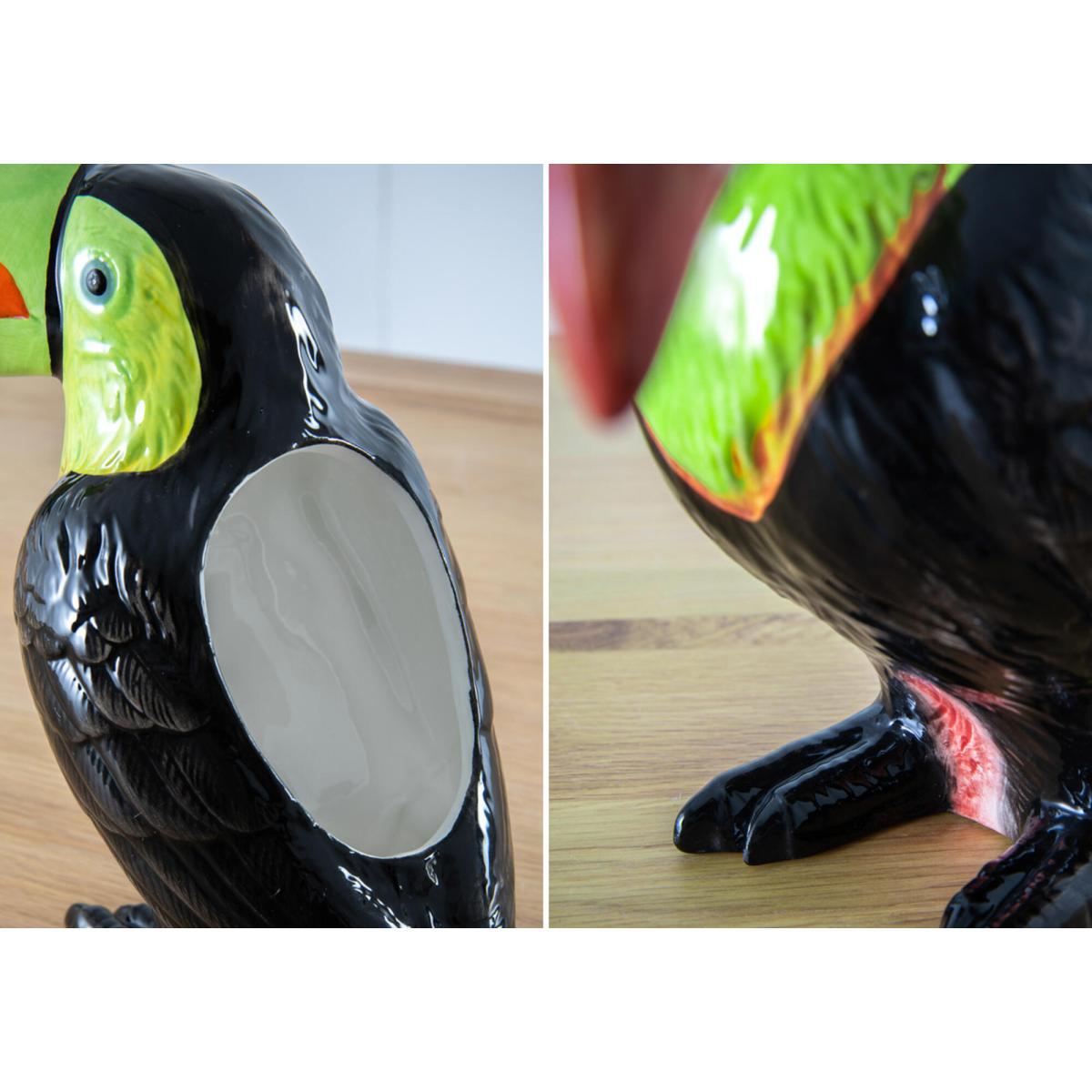 I love the Nusa Toucan Planter for adding a playful, eclectic touch to a variety of interiors. Its distinctive toucan shape works particularly well in contemporary or boho spaces, where it can serve as a statement piece on shelves, sideboards, or even desks. For styling tips, consider pairing it with lush greenery to highlight the tropical vibe, or contrasting it with minimalist décor to let the planter stand out. It's practical, too-perfect for small to medium-sized plants, and its eye-catching design invites a bit of fun into everyday spaces. Overall, it’s a charming addition that combines functionality with whimsical character.
