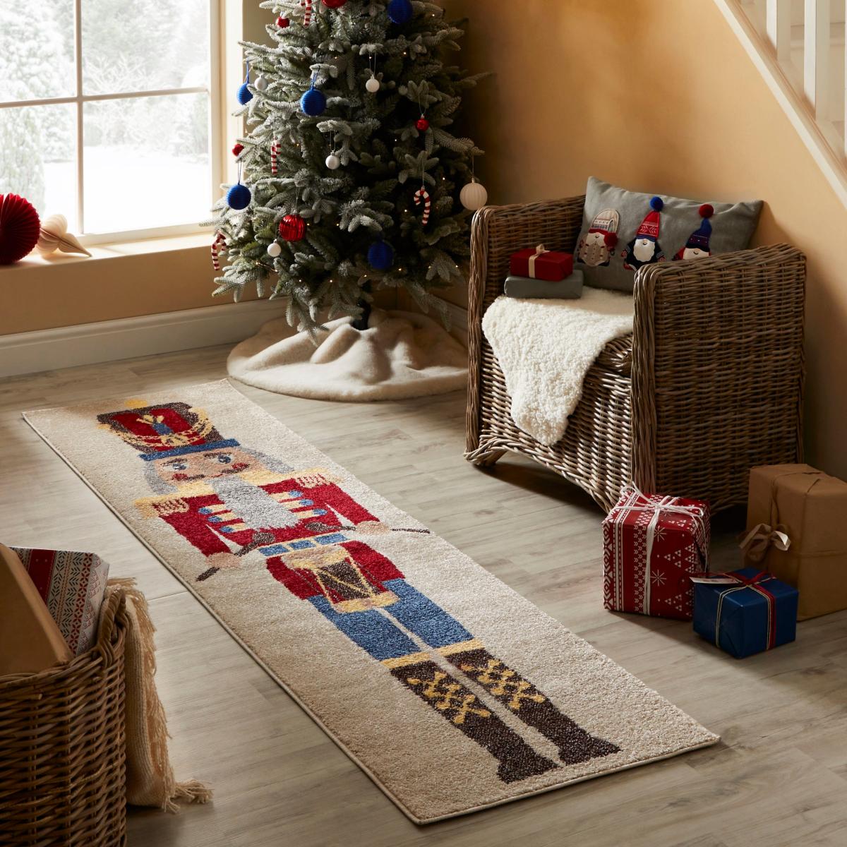 I love the Nutcracker Christmas Runner for its vibrant multi-coloured design, which adds a cheerful festive touch without overwhelming the space. It works particularly well in traditional or eclectic interiors, where it can complement other holiday details or stand out as a statement piece. Practical styling tips include layering it over a neutral rug to highlight its colours or pairing it with simple, coordinated decor to create a cohesive festive look. Its durability makes it suitable for high-traffic areas, such as hallways or near the Christmas tree, ensuring it remains a functional and stylish addition throughout the season.