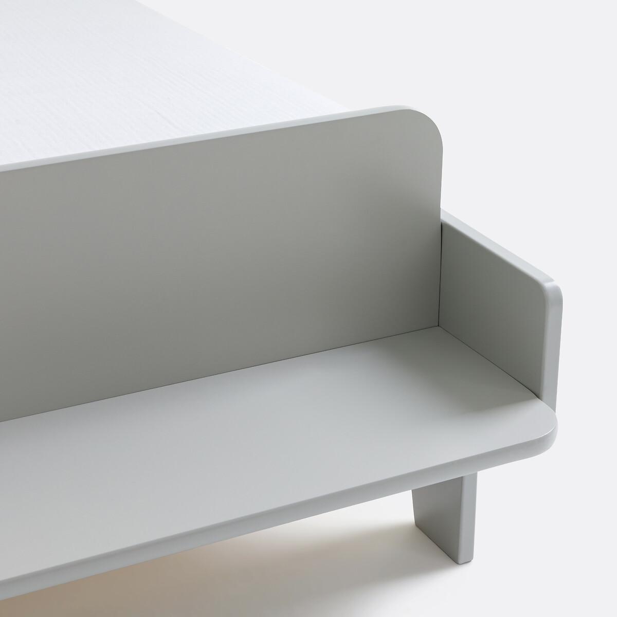 Nuttéo child's bench bed with base. An original and practical seat at the end of the bed. Product Details • A little bench at the end of the bed • Plywood slatted base • Sleeping area 90 x 190cm • Lacquered MDF with a nitrocellulose finish. Dimensions • Width: 94cm • Height: 64.5cm • Length: 219cm. Delivery: • This product is sold for self-assembly. It will be delivered to your door. Note! Please check that all access points are large enough to accommodate your delivery (doors, stairs, lifts).Dimensions and weight of parcel:2 parcels • L224.5 x H7.5 x D41.5cm - 13kg • L107 x H14 x D69 cm - 28kg