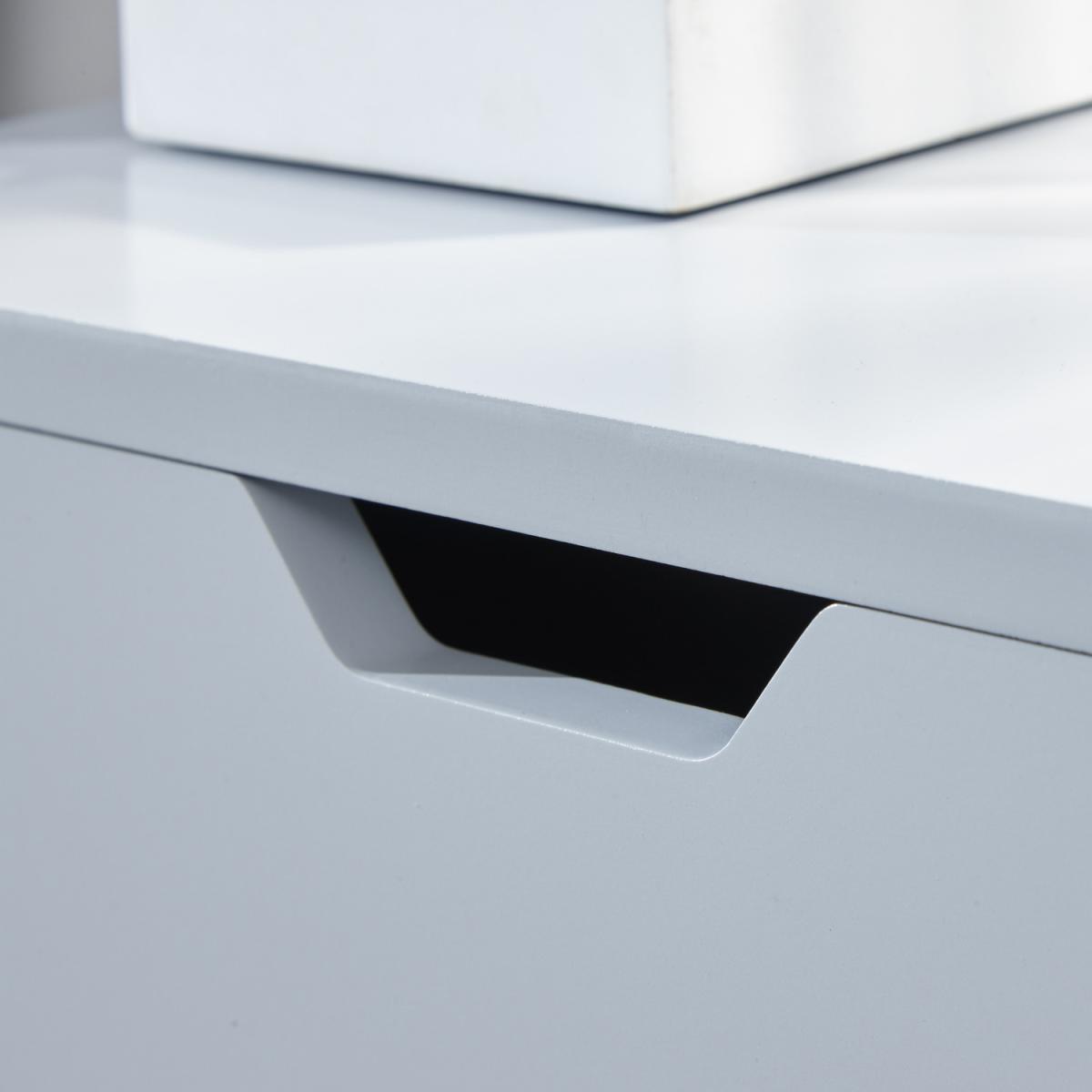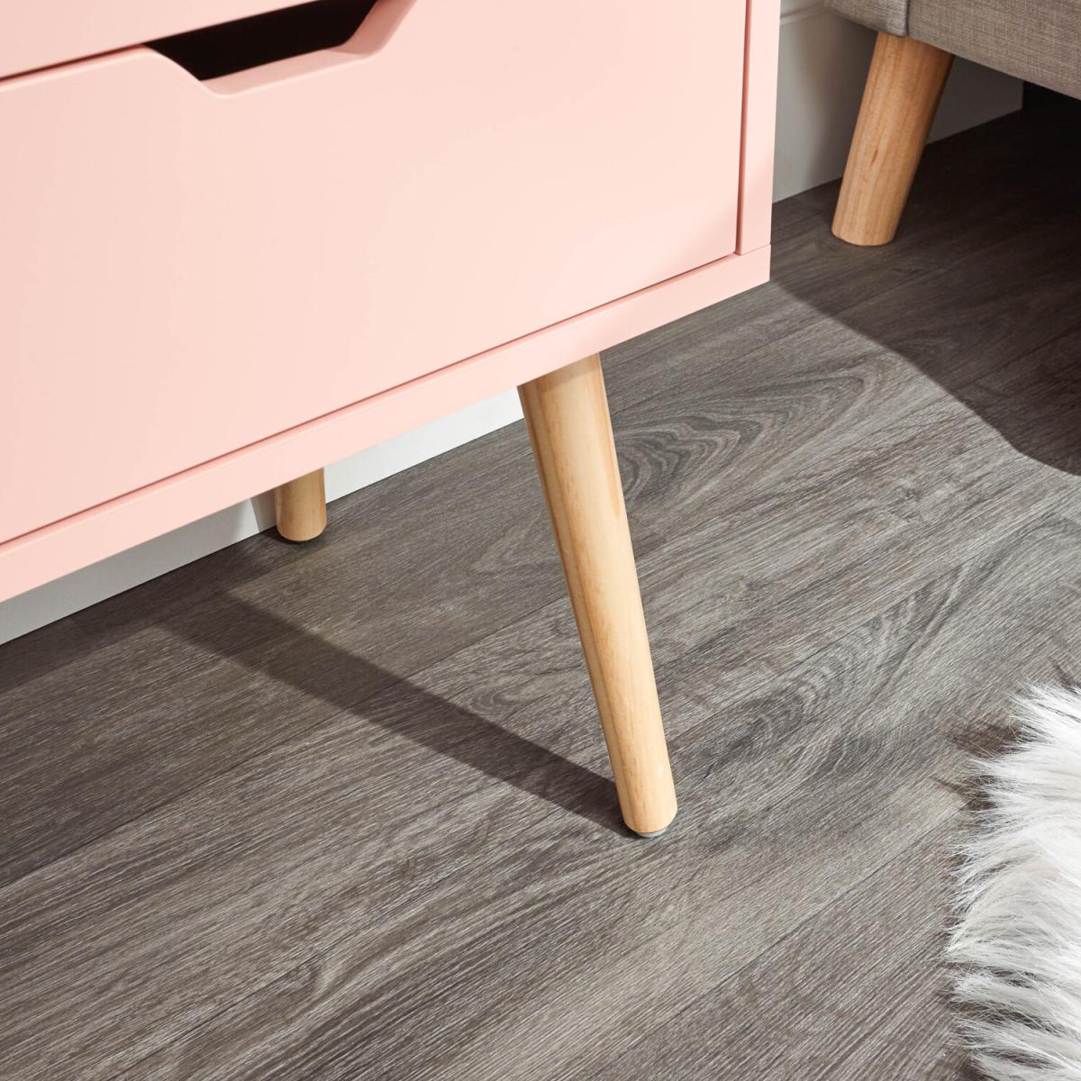 I love this little guy for its simple, Scandi-inspired design and versatile colour. The light grey finish pairs well with both muted tones and richer colours, making it adaptable for various interiors-from contemporary to minimalist. Its compact size and practical drawers make it a functional choice next to a bed or in a cosy corner. For styling tips, try softening the look with tactile accessories like a textured lamp or plant on top, or add some colour with a cushion or decorative book nearby. Its understated yet stylish aesthetic makes it an easy addition that can elevate the overall look without overwhelming the space.