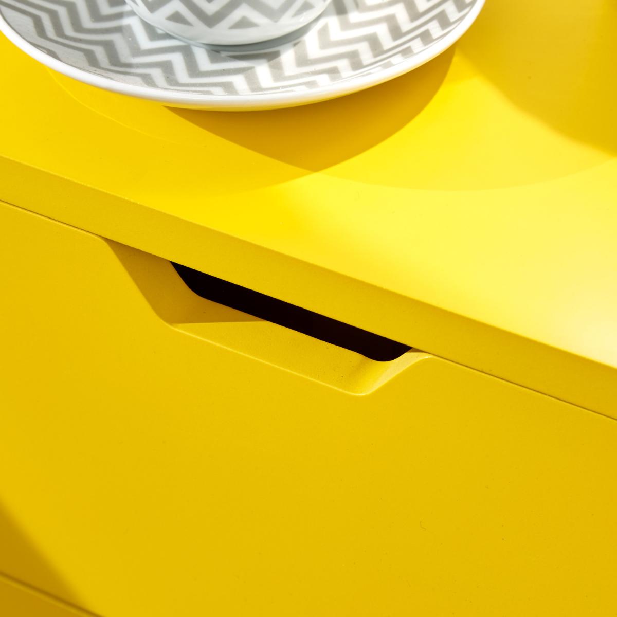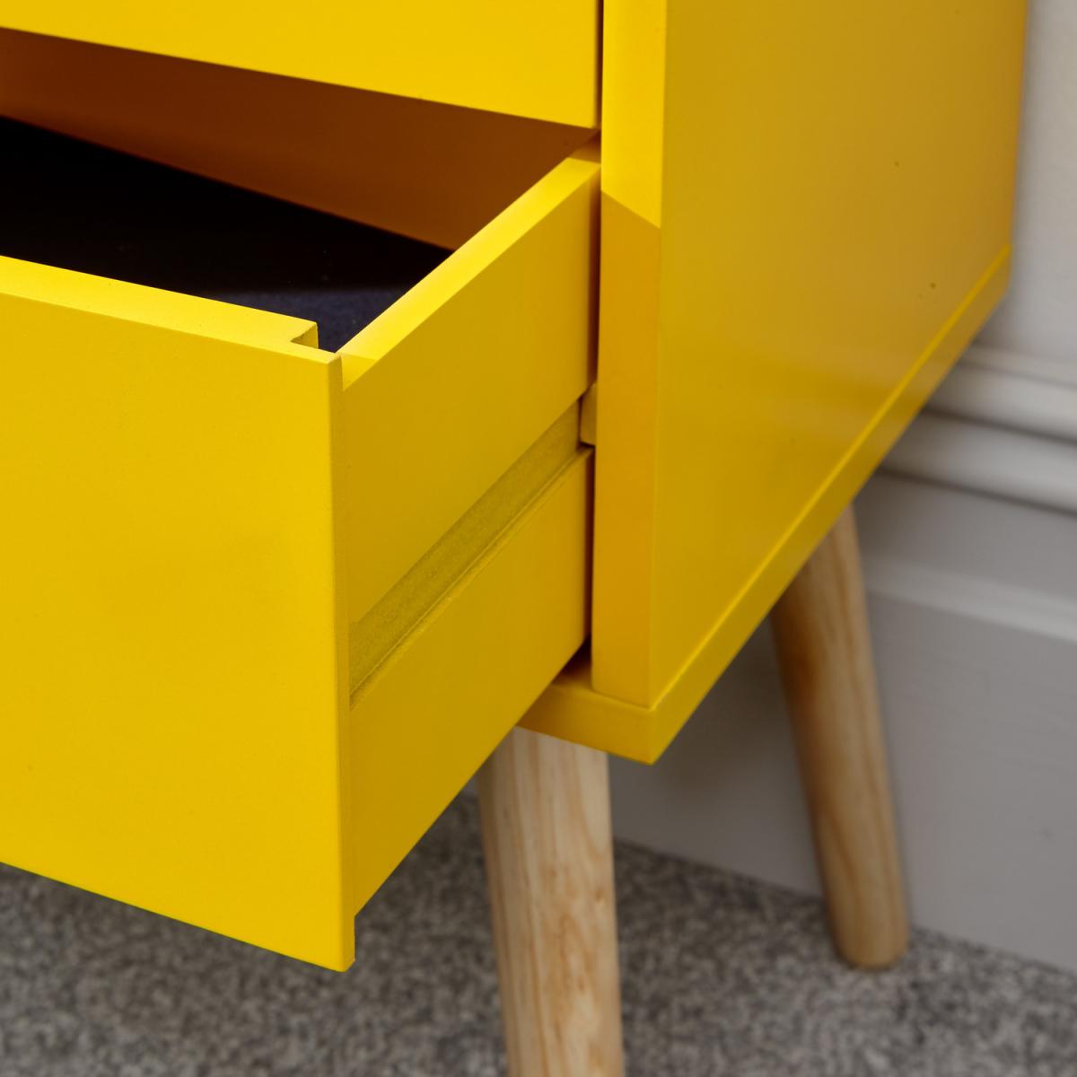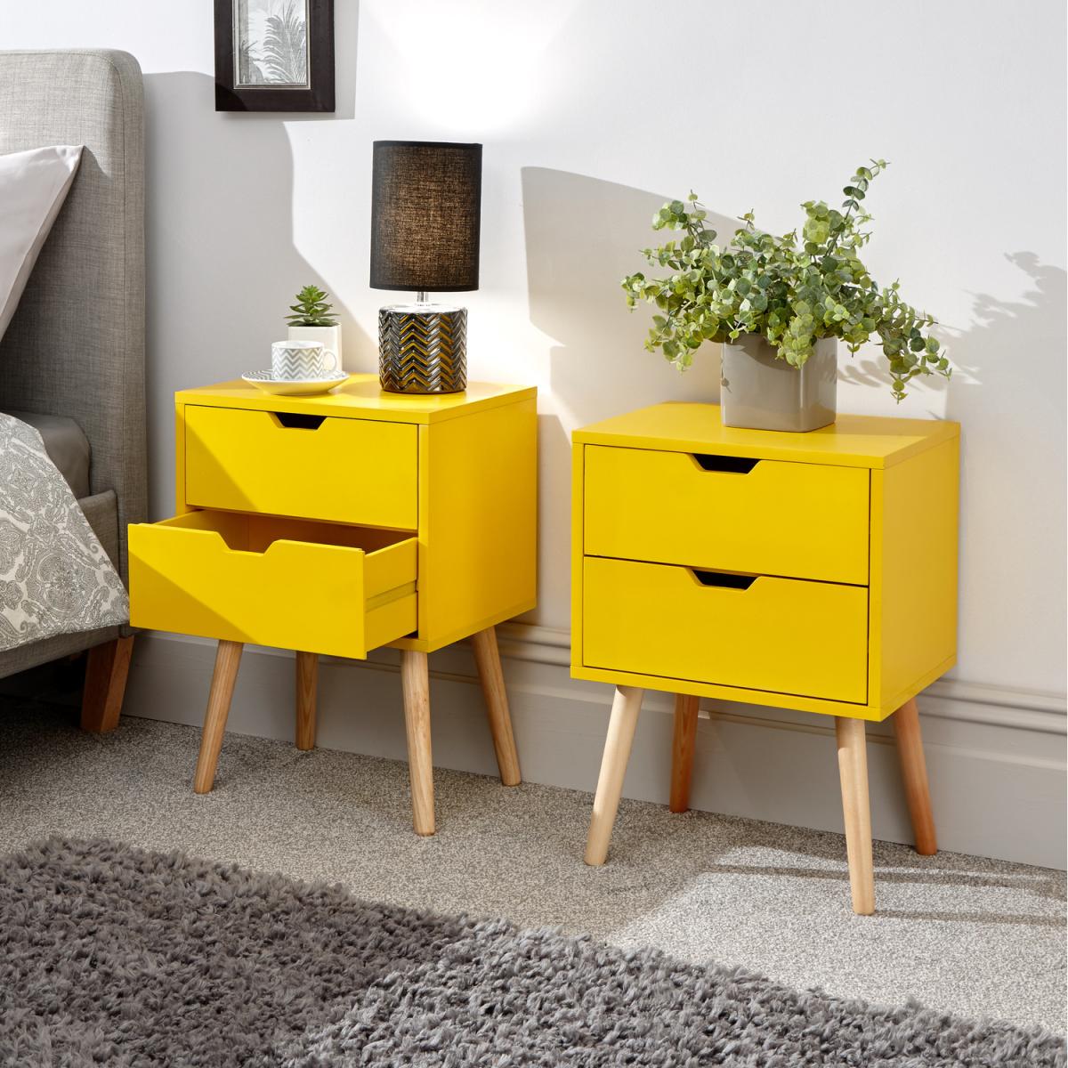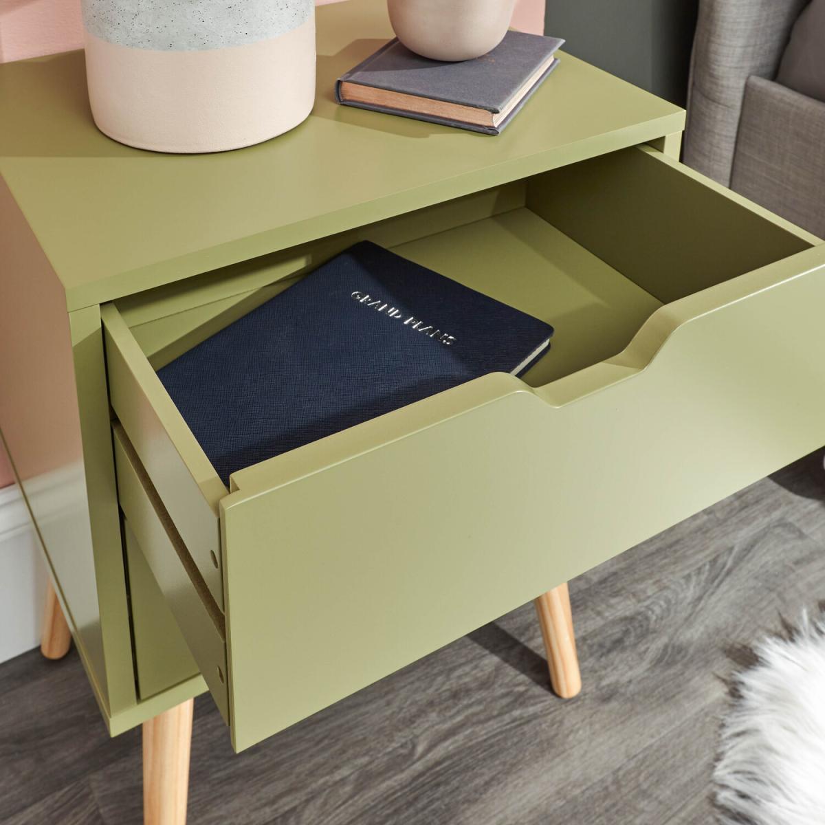 Spruce up your bedroom with a funky Nyborg bedside table - or two! This Scandi-inspired unit makes a virtue out of simplicity. The classic cuboid form is just the right size to accommodate a lamp and a book or two, while the two handy drawers feature classic cut-out handles for simple yet effective operation. The whole is painted in a choice of on-trend colours - including exciting new shades of warm pink, soft green and ink blue - and mounted on pale-wood legs.
