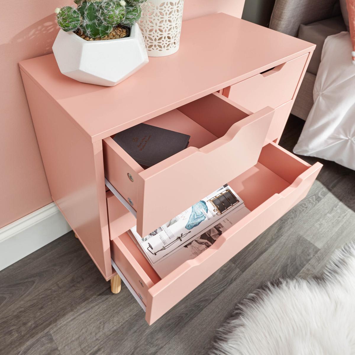 I love this coral pink chest for the way it lifts a neutral scheme without overpowering the room - it works equally well in Scandi-inspired bedrooms, contemporary hallways or a playful kids’ space. The soft colour pairs beautifully with light woods, greys and muted greens, so you can introduce it without reworking your entire palette. For styling, keep the top simple: a small table lamp, a ceramic vase or a framed print, and perhaps a stack of books to balance height. Inside the drawers, use organisers to separate small items, making everyday tidying effortless.
