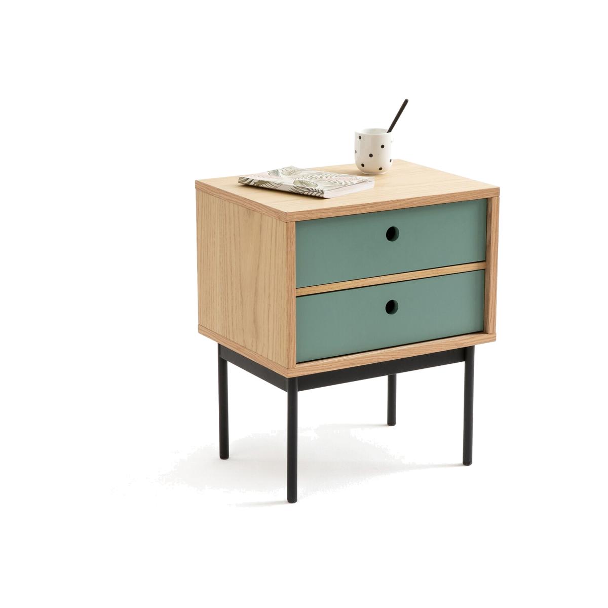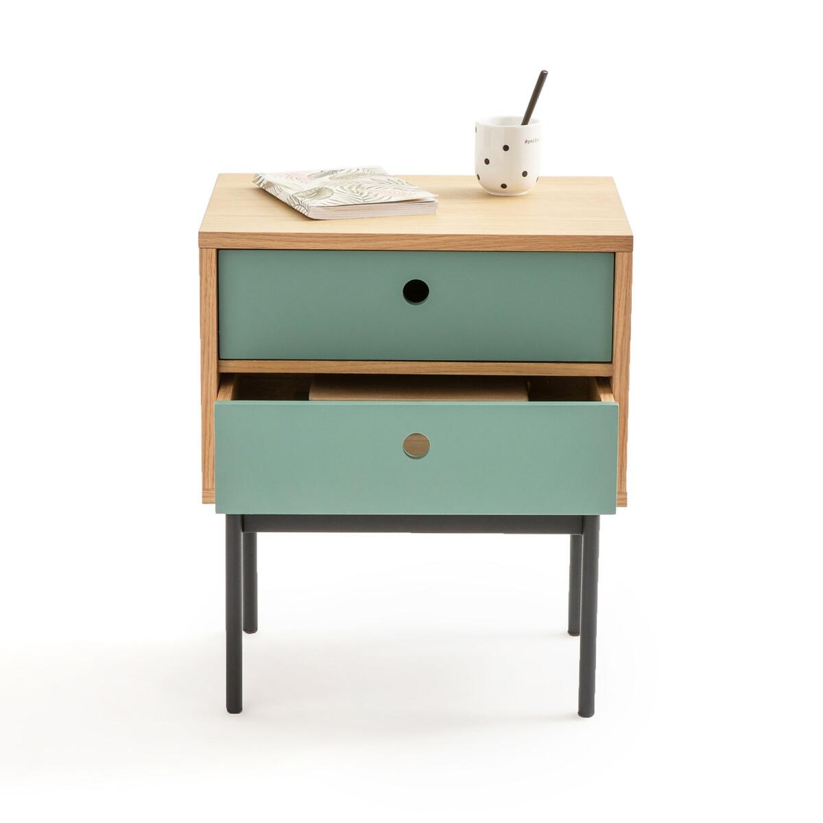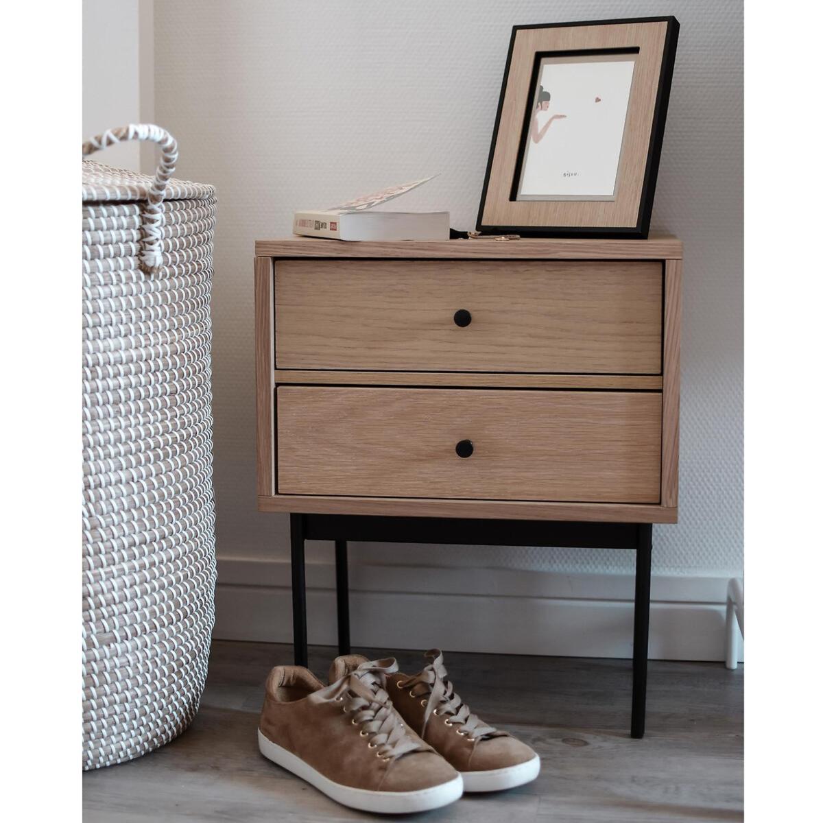 A perfect balance of functionality and form, this 2-drawer bedside table is a great addition to contemporary bedrooms. We love the harmonious mixing of wood and metal, and the drawers are customisable, giving you the option of a splash of colour or a natural all-over look!