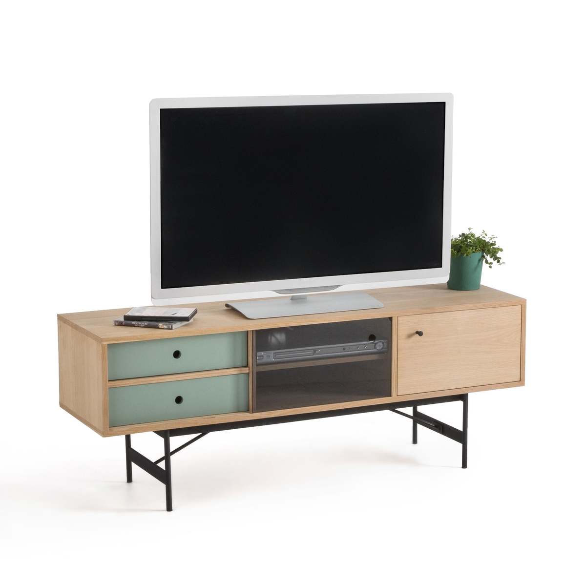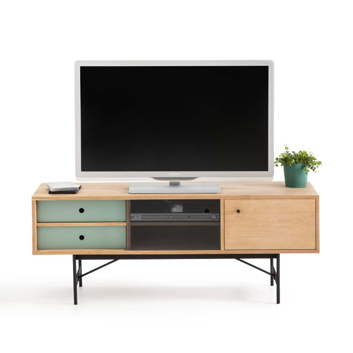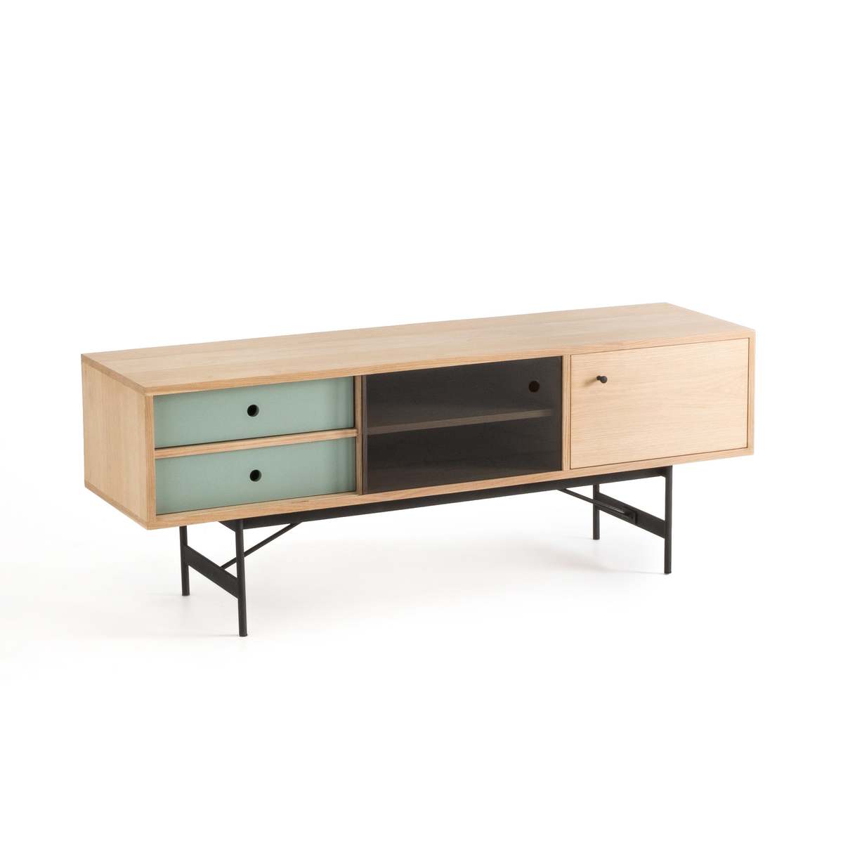 I love this piece because of its sleek, modern design combined with practical storage options. Its clean lines and mix of colours make it versatile for various interiors, from Scandi-inspired schemes to more contemporary or minimalist spaces. It works particularly well in living rooms where you want a neat, organised look without sacrificing style. Styling tips include adding decorative objects like books, vases, or small accent pieces on top to create visual interest, while using the internal compartments to keep away clutter. Pairing it with a textured rug or a subtle wall colour will help it stand out and complement the overall vibe of your room.