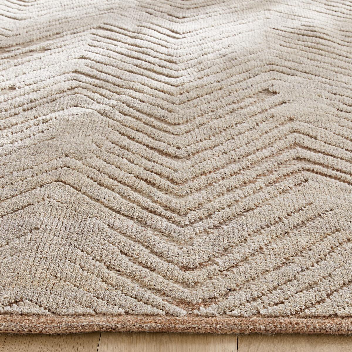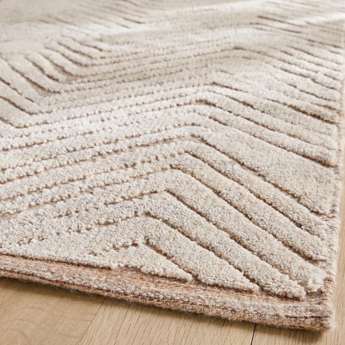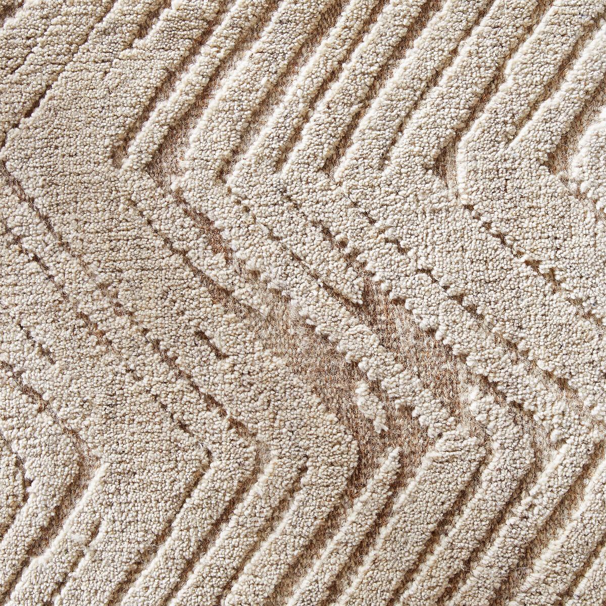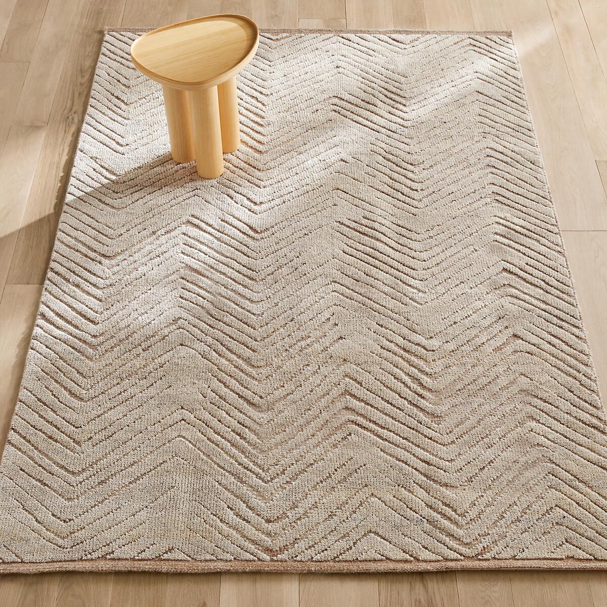 In mottled wool, Nykare is a dense, comfortable and warm contemporary rug. Its irregular chevrons are woven and knotted by hand with skill, by Indian artisans. Its pattern, punctuated by a few small coloured threads, is formed by the texture of the weaving on a darker flat woven background.. Nykare is also a good heat and sound insulator. An AMPM design that'll work in any room. Product Details • 70% wool, 22% polyester, 8% cotton • Craftsmanship:Hand woven • Weight: 2400 g/m2 • Pile height: 6 to 8mm. Quality Info • Handcrafted, each piece is unique and has its own shades of colour that may differ from one rug to another. • Wool is a warm and comfortable fibre. A wool rug is also an excellent thermal and sound insulator. Care Advice • Some materials such as wool are very fibrous and you can actually observe a piling during the first weeks of use: this is a normal for this type of product and is not a defect. Remove the excess fibres by hand where possible, do not use a vacuum cleaner with a rotating brush as this can pull and tear the fibres. The pilling will improve over time. • We advise you to vacuum it very little the first month and then to vacuum it without rubbing too much always without using the brush. • Remove any stains immediately with a clean, damp cloth. • Dry clean recommended. Sizes • Width 120 x Length 180cm • Width 160 x Length 230cm • Width 200 x Length 290cmDelivery:. Available for home delivery.