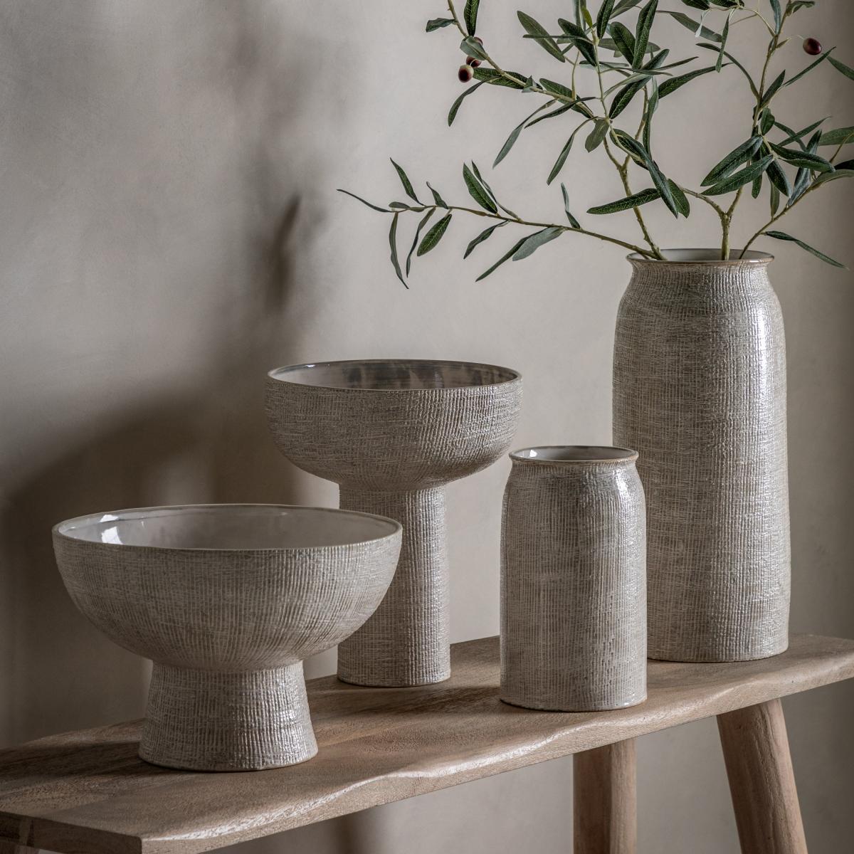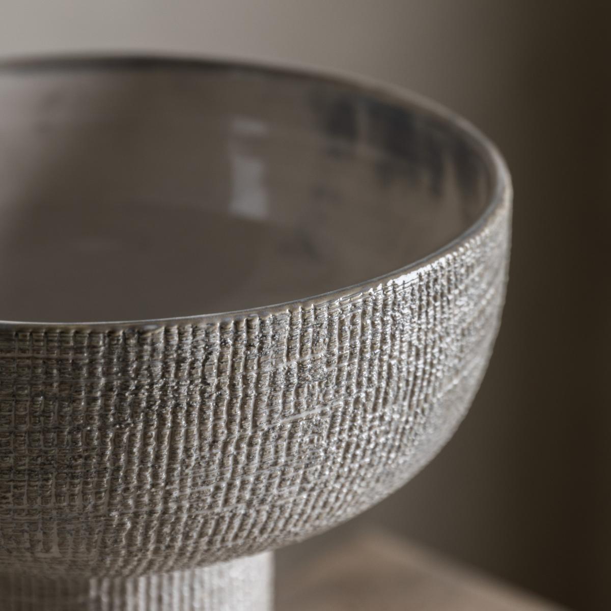 * Great for adding height * Ribbed * Textured ceramic * Indoor use * Another size available If you’d like some extra height in your display, this is the perfect solution. With a raised bowl shape and ribbed, textured finish, this is a versatile way to add an eye-catching focal point. Another size is available: group them together for impact.