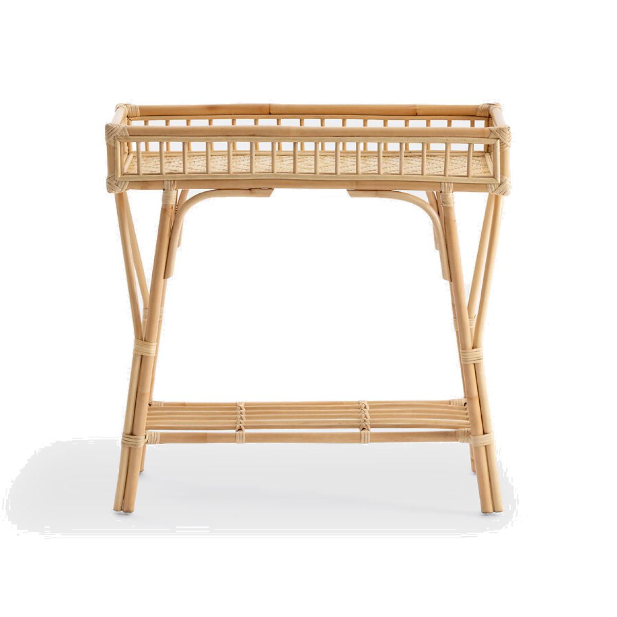Fall in love with this rattan console table. We love its vintage style and natural finish with warm tones! In the living room, in a bedroom or in a hallway, it will showcase books or pretty green plants. Product Details • Rattan cane frame, top shelf surface in natural finish bamboo weave • 2 shelves • 4 plastic feet • Sold pre-assembled. Dimensions • Width: 72cm • Height: 72cm • Depth 27cm • Height between the 2 shelves: 46cm • Height of upper section: 11cm. Dimensions and weight of parcel1 parcel • L74 x H75 x D29cm. 7kg
