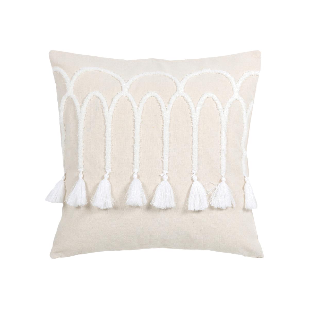 This Nyla Tufted Curve Cushion would make a great addition to a bohemian aesthetic. The neutral tones of this cushion allow it to blend into any interior decor theme, adding a soft and stylish element to your space. The tufted curve design adds texture to this cushion while the tassels give it a charming finish.