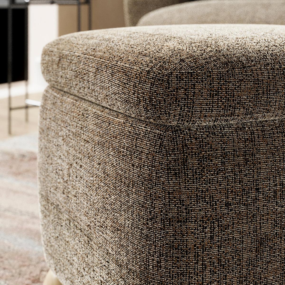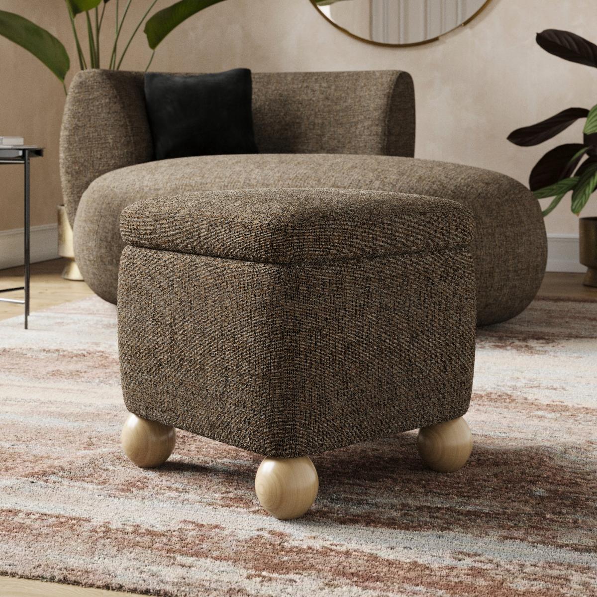 * Wooden, rounded legs * Soft fabric * Retro design Elegance meets practicality with the Nylah Storage Footstool. Upholstered in boucle fabric, it offers a sophisticated look while providing hidden storage for small essentials. The FSC-certified rubber wood legs enhance its durability while maintaining a stylish, modern feel. Pair it with the matching ottoman for a complete set or explore other options in the Nylah collection.