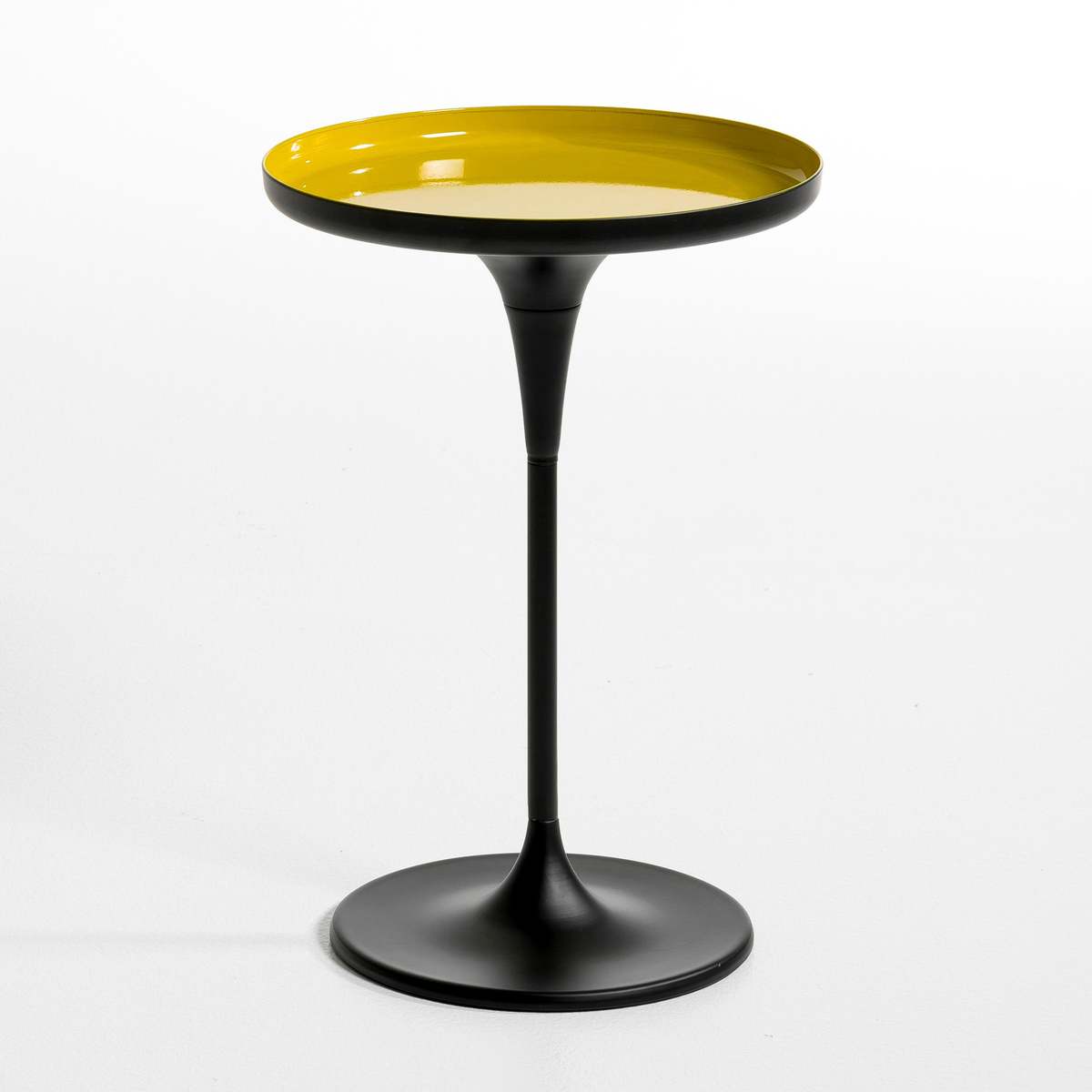 A glossy coated top on a central base will bring a lively hit of colour to any room.Striking and sophisticated, this elegant pedestal table brings a bolt of energy to your home. With a slender base and pop of colour on top, it is finished with a glamorous high gloss. Perfect for popping next to your favourite chair or each side of your bed to keep magazines and drinks to hand.