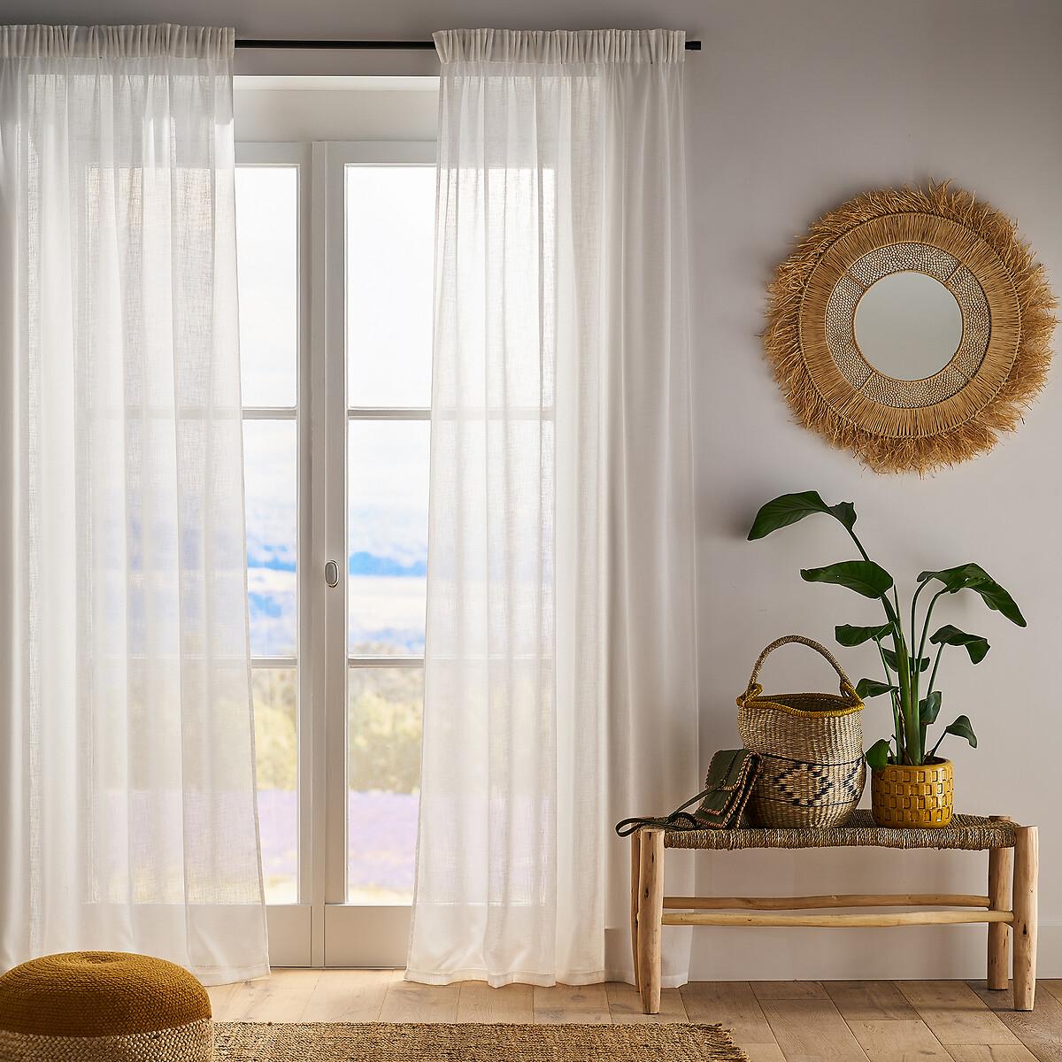 Ideal for filtering light, the Nyon voile panel creates a warm ambience. Light and airy, polyester sifts outdoor light. Easy to care for, it does not crease and does not require ironing.. The gathering braid creates pleats according to the spacing you want. Several levels of hooks let you choose the height to leave the curtain rod visible or not. Product Details • 100% polyester, (150g/m²) • Top finish : gathered header, sold with fixing hooks • Finished bottom :Plain hemmed edging To help you in the choice and maintenance of your curtains, do not hesitate to consult our guide by typing "Curtain Buying Guide" in our search engine on the site. Care Advice • Machine washable at 30°C • Maximum shrinkage after washing : 3% approx. Fabrics made from natural fibres may shrink in the first wash. Always wash your curtains before making any alterations. • Do not tumble dry • If you don't need to iron them (linen curtains, Voile Panel...), let the curtains air dry by hanging them immediately after washing, making sure to spread them out to their full width. • If you want to iron your curtains, we recommend using a low-temperature steam iron or a steamer. Dimensions • Drop 180 x Width 140cm • Drop 250 x Width 140cm • Drop 350 x Width 140cm • OEKO-TEX® Standard 100. Standard 100 certification by OEKO-TEX® tests textile products for harmful substances via an independent, international label.