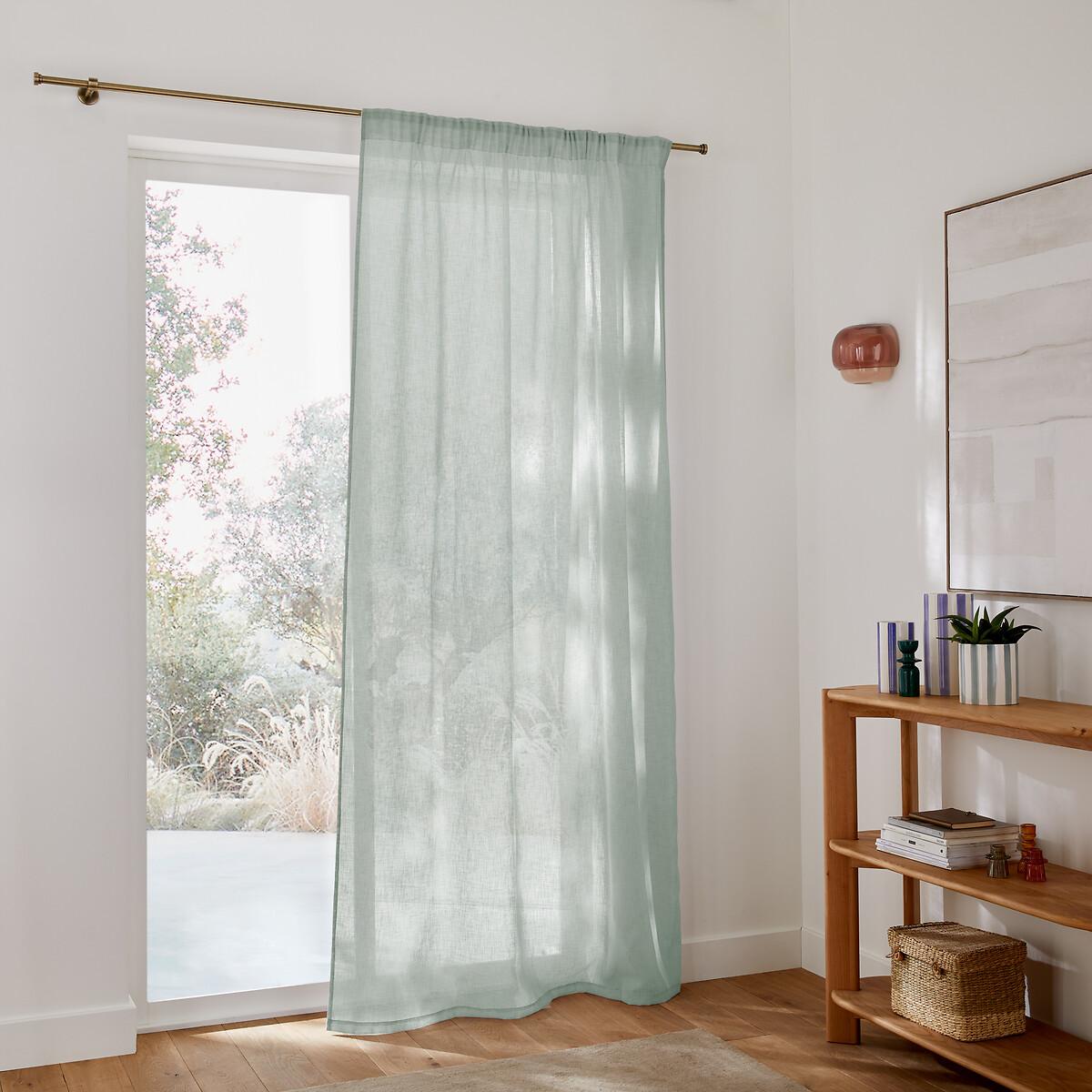 Ideal for filtering light, the Nyon voile panel creates a warm ambience. Light and airy, polyester sifts outdoor light. Easy to care for, it does not crease and does not require ironing.. The gathering braid creates pleats according to the spacing you want. Several levels of hooks let you choose the height to leave the curtain rod visible or not. Product Details • 100% polyester, (150g/m²) • Top finish : gathered header, sold with fixing hooks • Finished bottom :Plain hemmed edging To help you in the choice and maintenance of your curtains, do not hesitate to consult our guide by typing "Curtain Buying Guide" in our search engine on the site. Care Advice • Machine washable at 30°C • Maximum shrinkage after washing : 3% approx. Fabrics made from natural fibres may shrink in the first wash. Always wash your curtains before making any alterations. • Do not tumble dry • If you don't need to iron them (linen curtains, Voile Panel...), let the curtains air dry by hanging them immediately after washing, making sure to spread them out to their full width. • If you want to iron your curtains, we recommend using a low-temperature steam iron or a steamer. Dimensions • Drop 180 x Width 140cm • Drop 250 x Width 140cm • Drop 350 x Width 140cm • OEKO-TEX® Standard 100. Standard 100 certification by OEKO-TEX® tests textile products for harmful substances via an independent, international label.